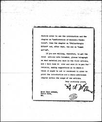 If you are willing, therefore, to get the first article into November, please telegraph me what material you want in the first article, and I will look it over and send it to you for revision, making suggestions as to where I think it might be cut or condensed in order to print the introduction and whole additional chapter within the scope of one article.