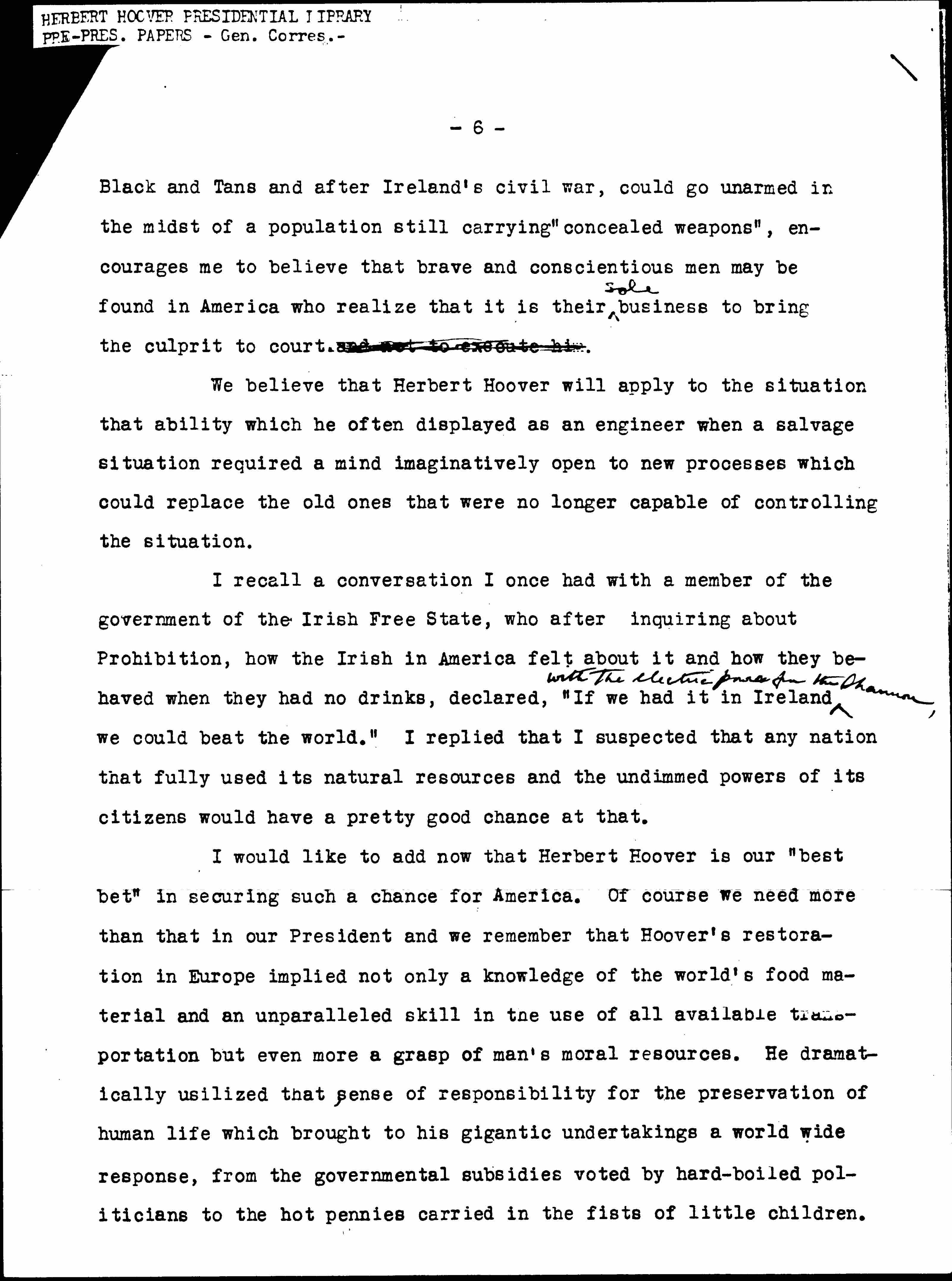 Statement Endorsing Herbert Hoover for President, October 13, 1928