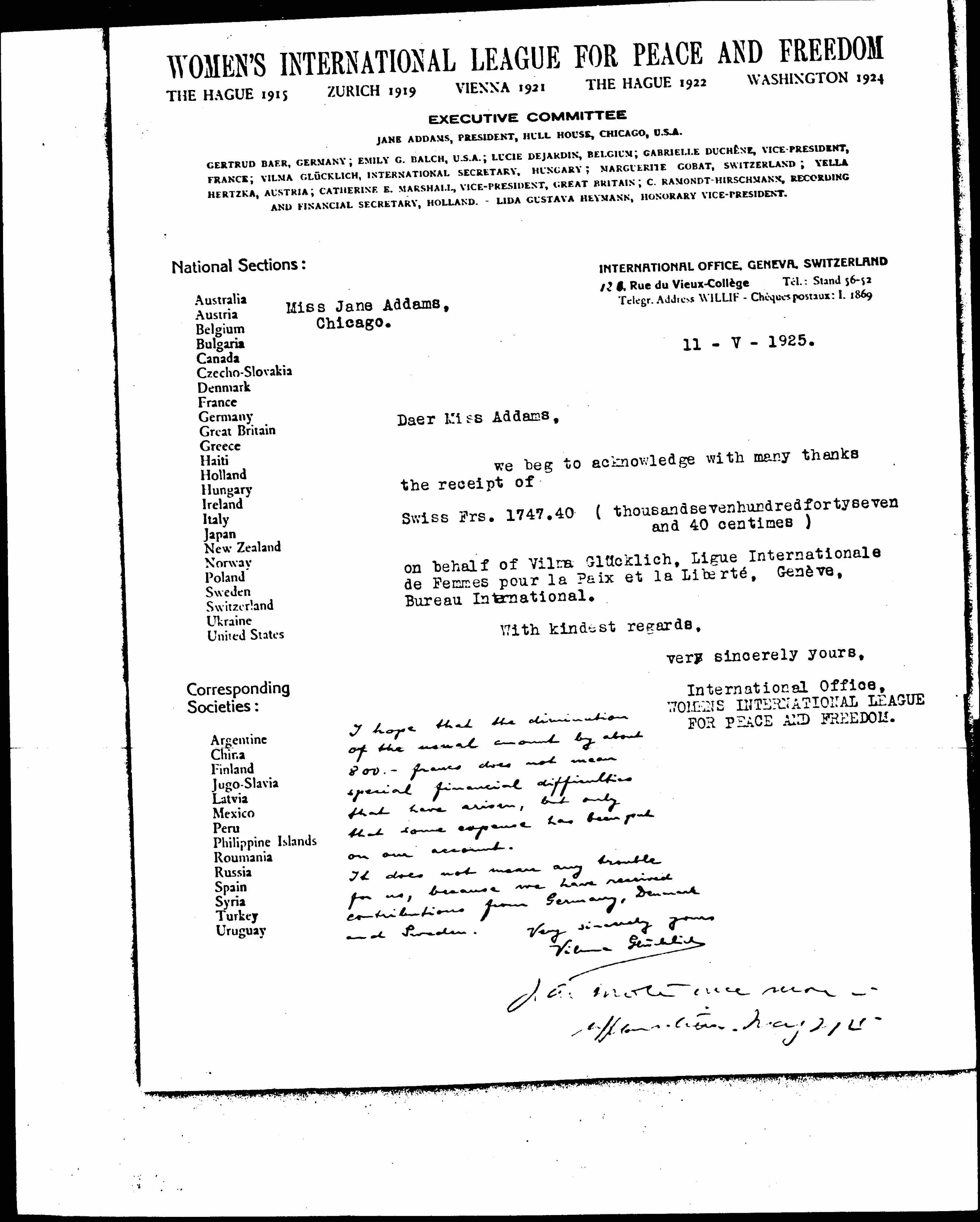 ↑I hope that the diminution of the usual amount by about 800. -- francs does not mean special financial difficulties that have arisen, but only that some expense had been put on our account.