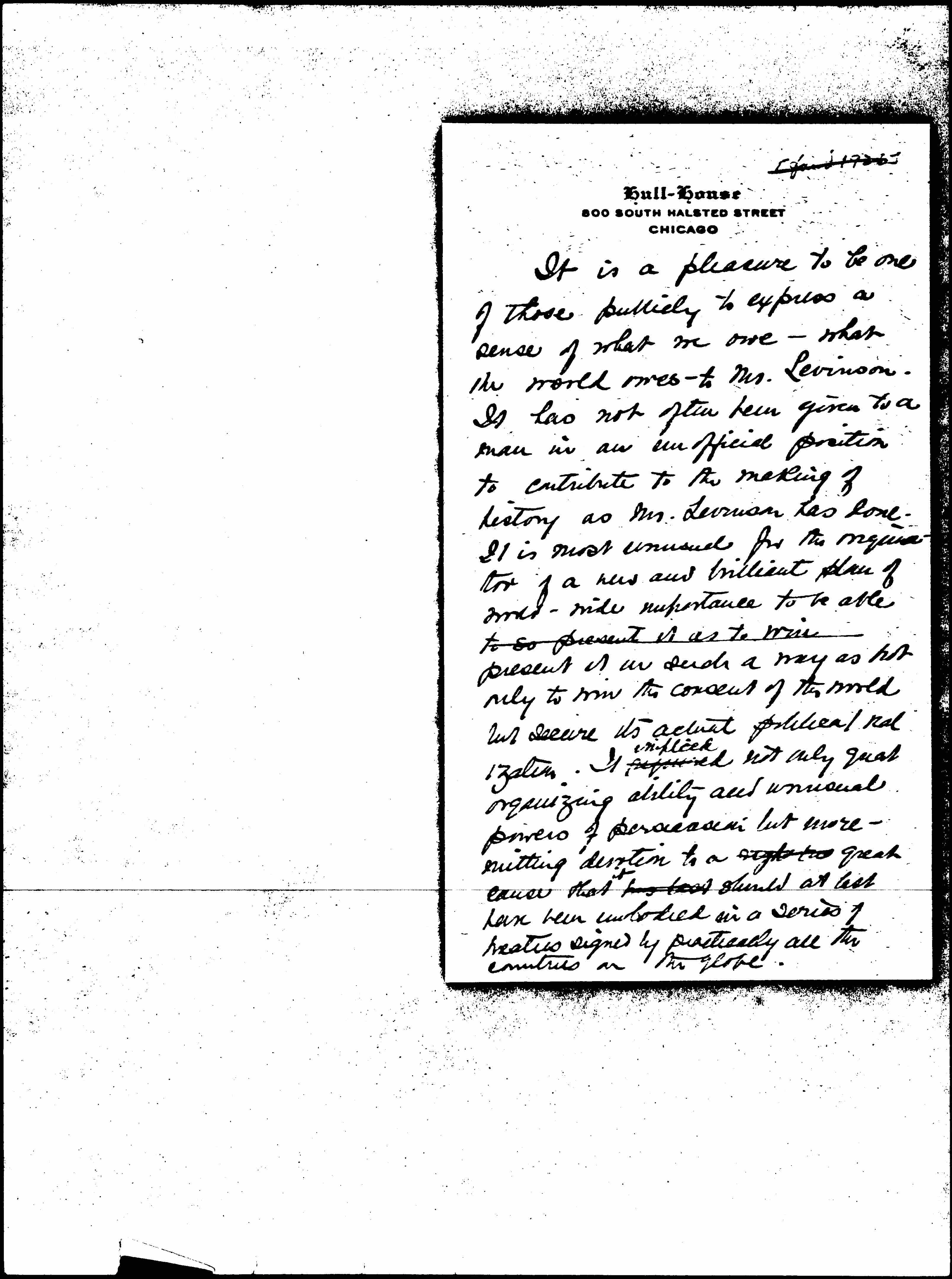 Salmon Oliver Levinson to Jane Addams, April 19, 1929