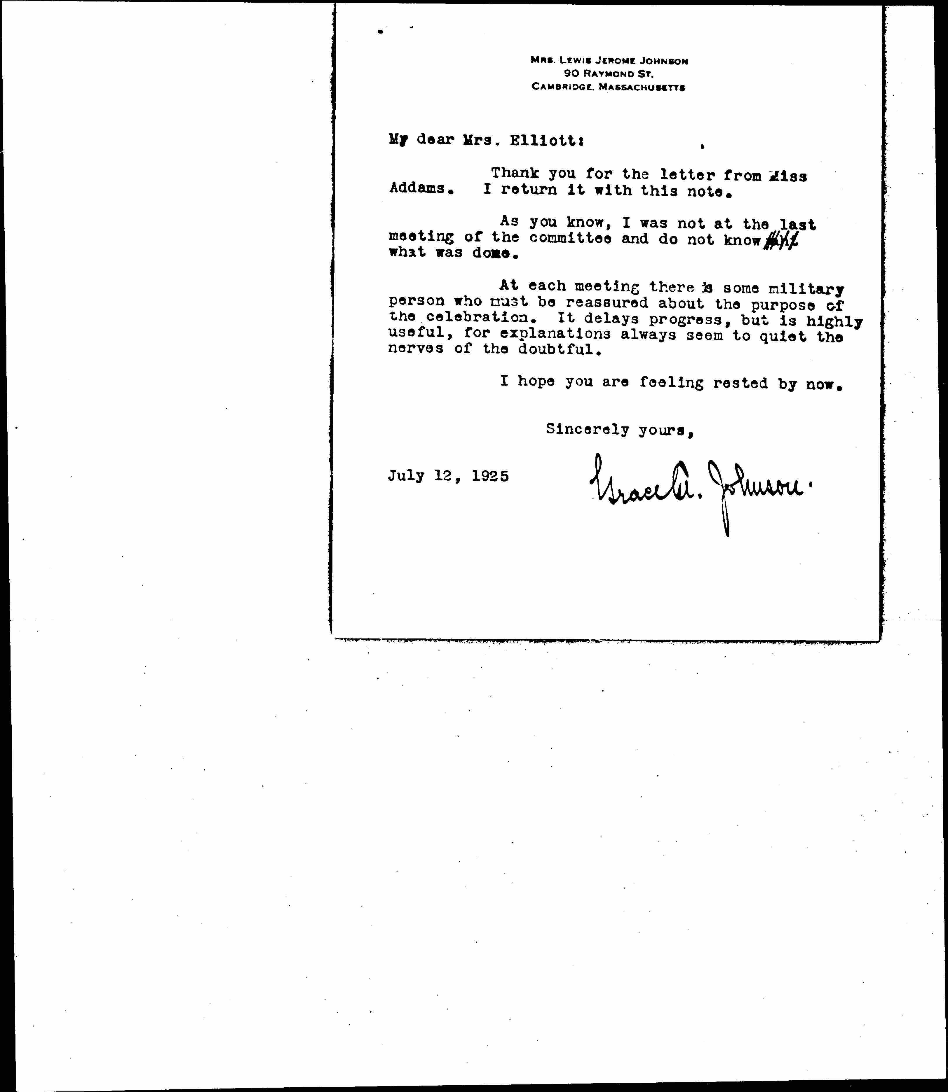 At each meeting there is some military person who must be reassured about the purpose of the celebration. It delays progress, but is highly useful, for explanations always seem to quiet the nerves of the doubtful.