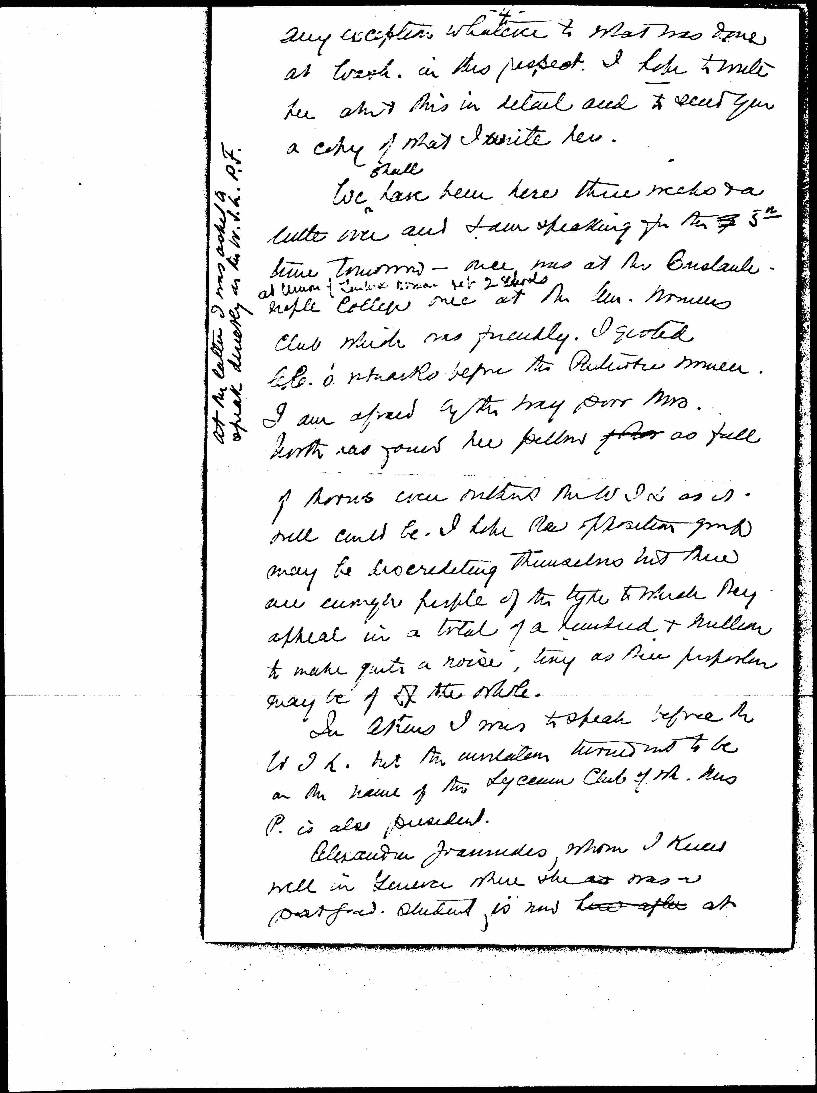 In Athens I was to speak before the WIL. but the invitation turned out to be in the name of the Lyceum Club of wh. Mrs P. is also president.