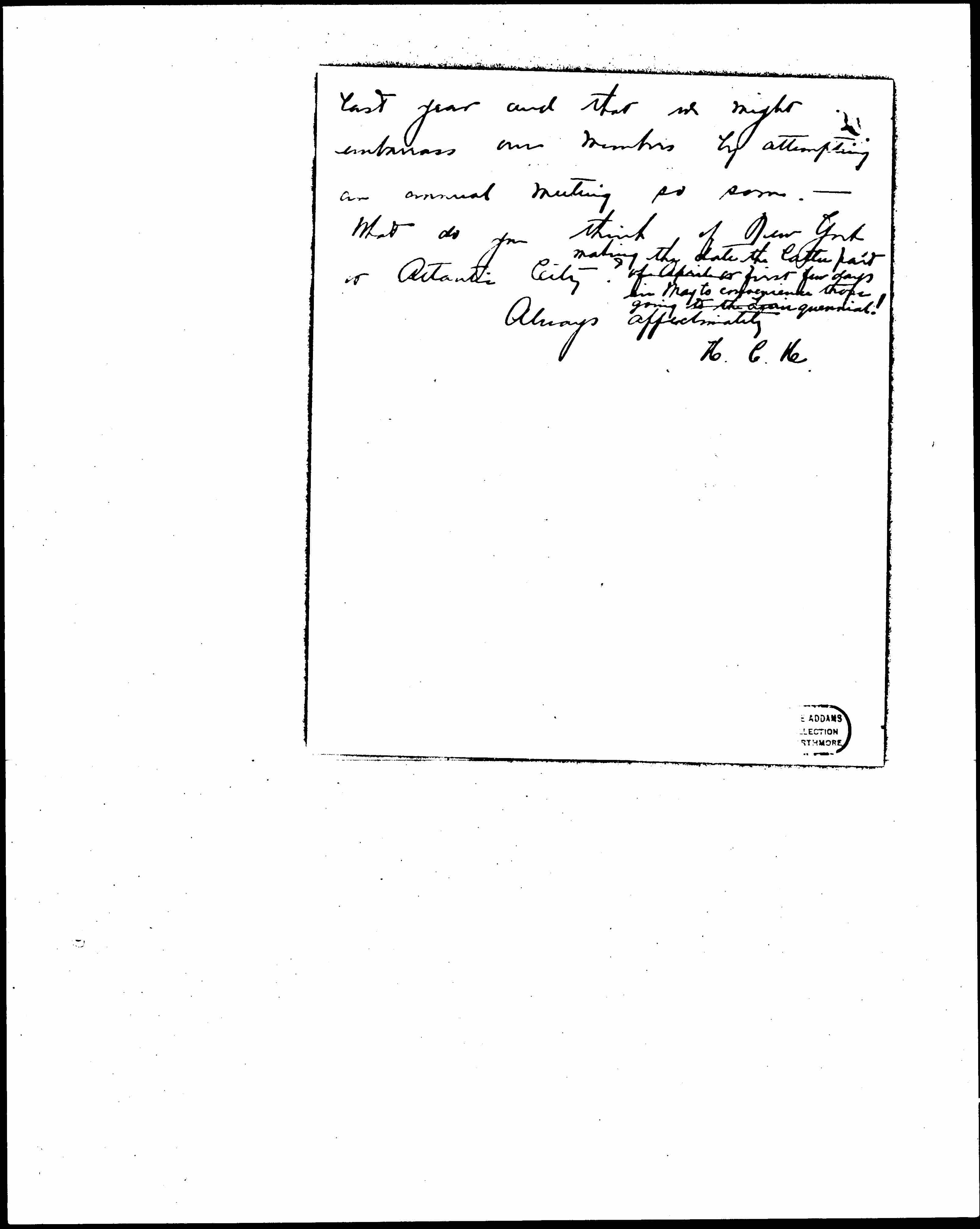 What do you think of New York or Atlantic City ↑making the date the latter part of April or first few days in May to convenience those going to the quinquennial?↓