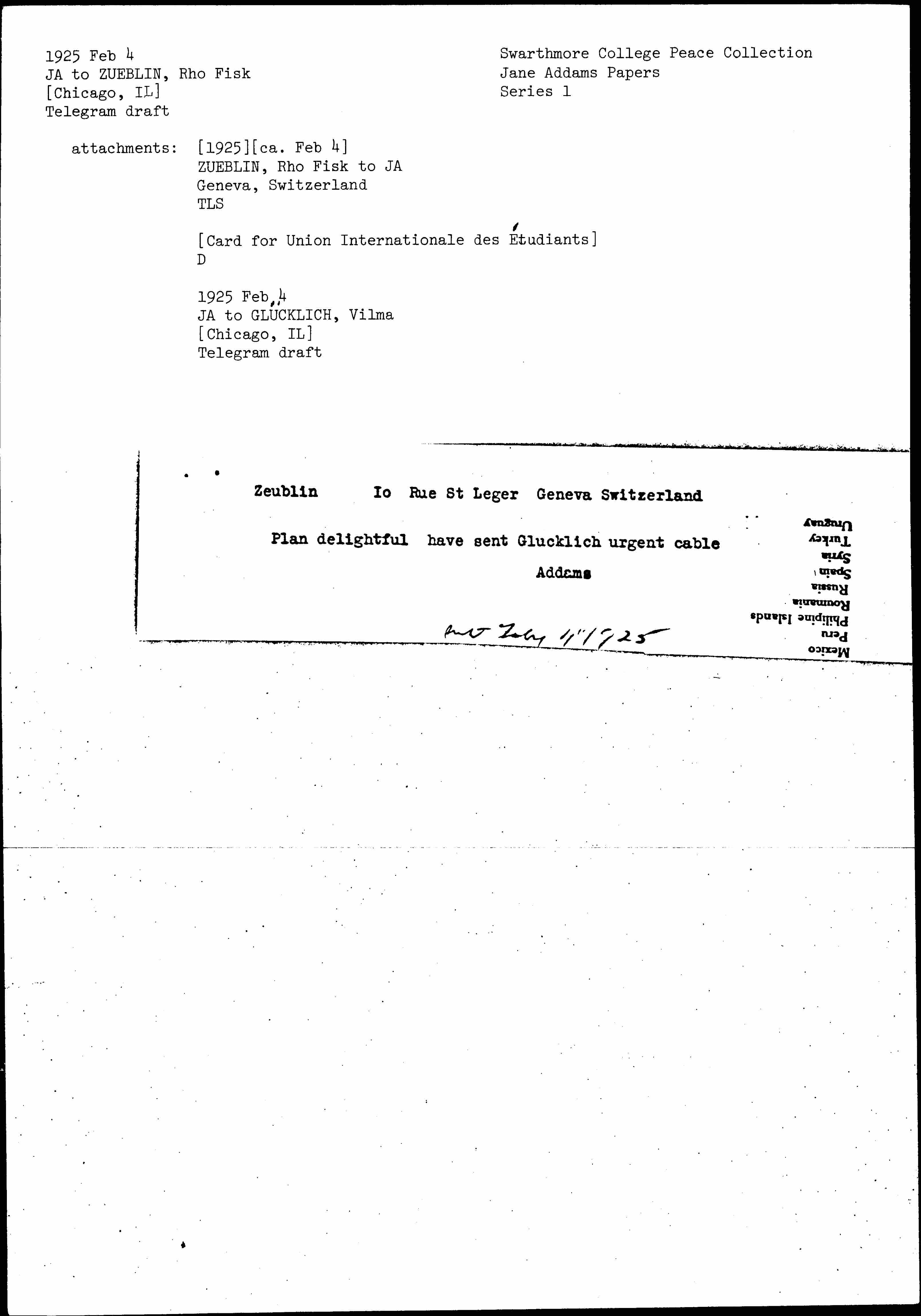 ↑sent Feby 4" 1925↓