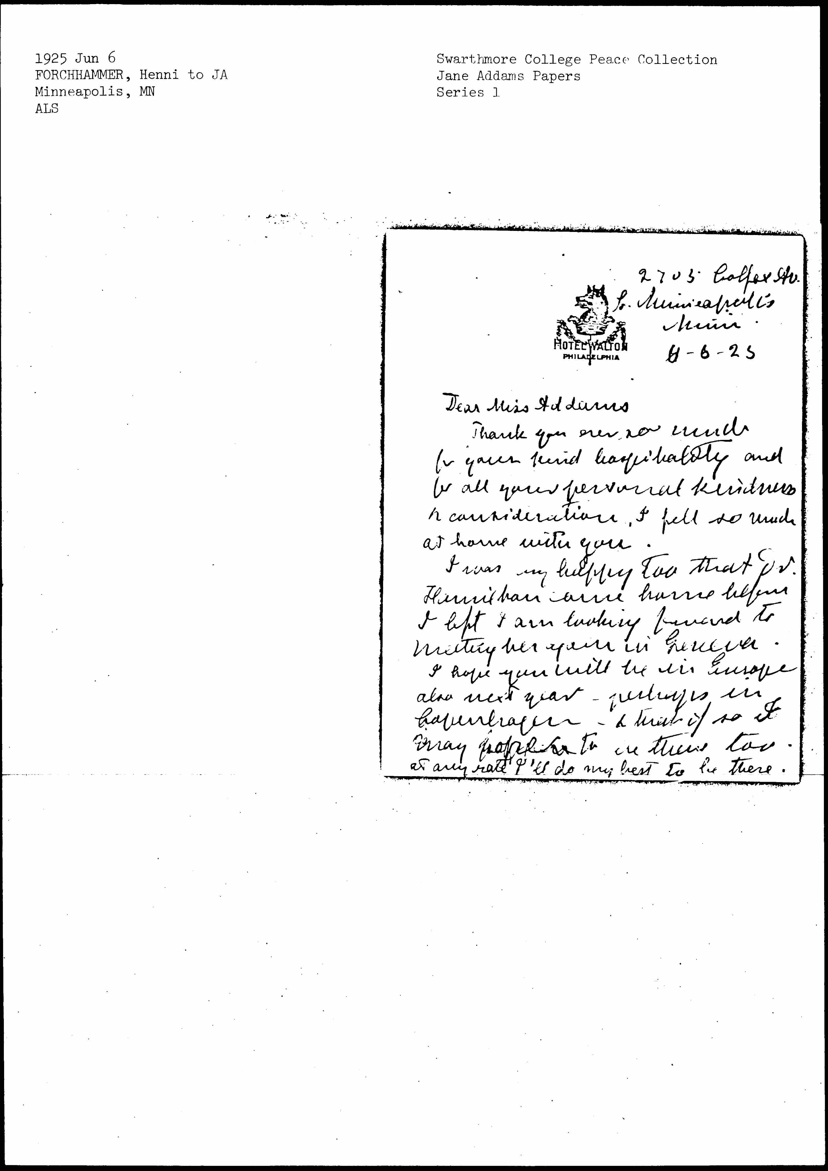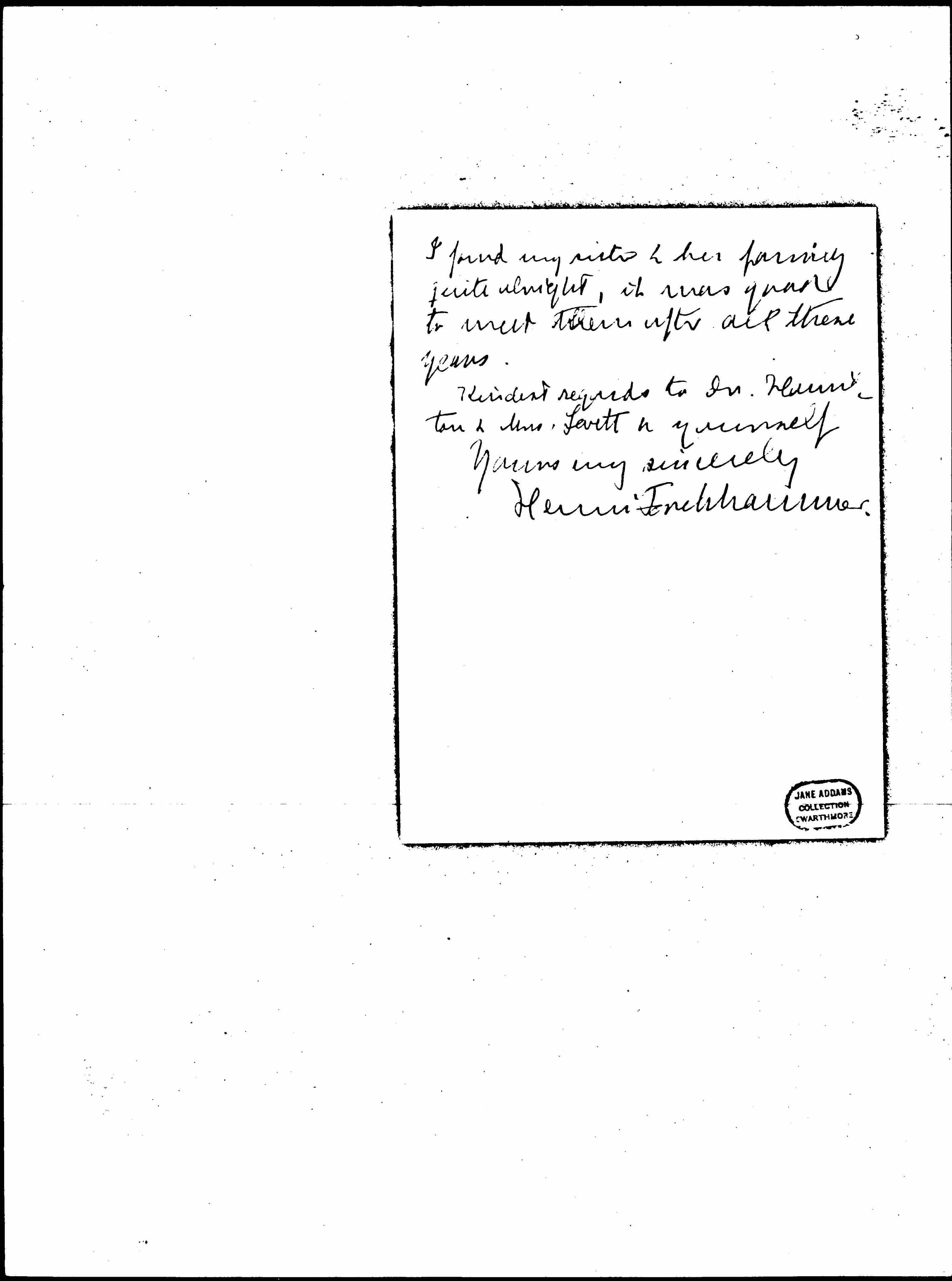 I hope you will be in Europe also next year -- perhaps in Copenhagen -- & trust if so I may [hope] to be there too. At any rate I'll do my best to be there. [page 2]