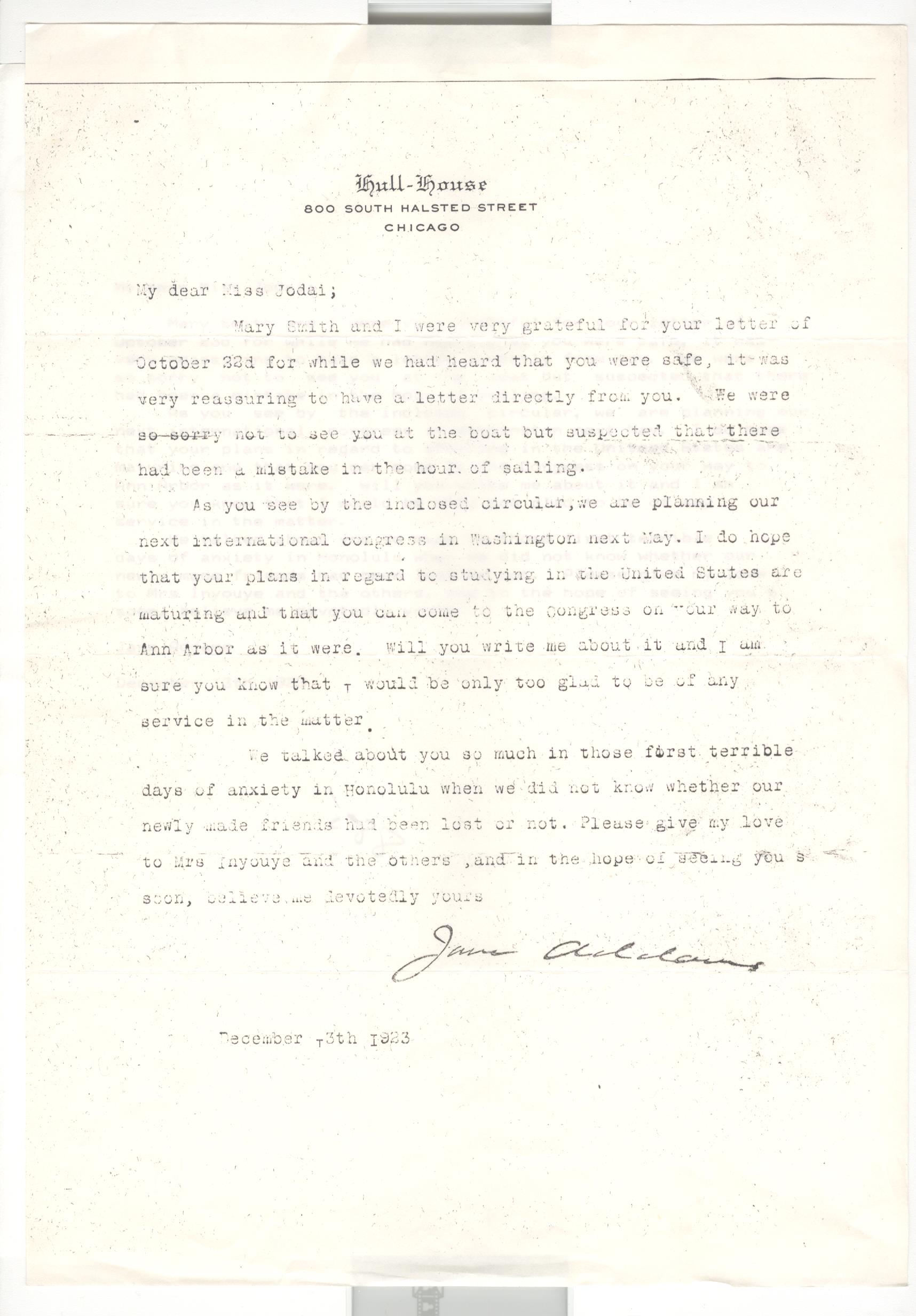 We talked about you so much in those first terrible days of anxiety in Honolulu when we did not know whether our newly made friends had been lost or not. Please give my love to Mrs [Inouye] and the others, and in the hope of seeing you soon, believe me devotedly yours