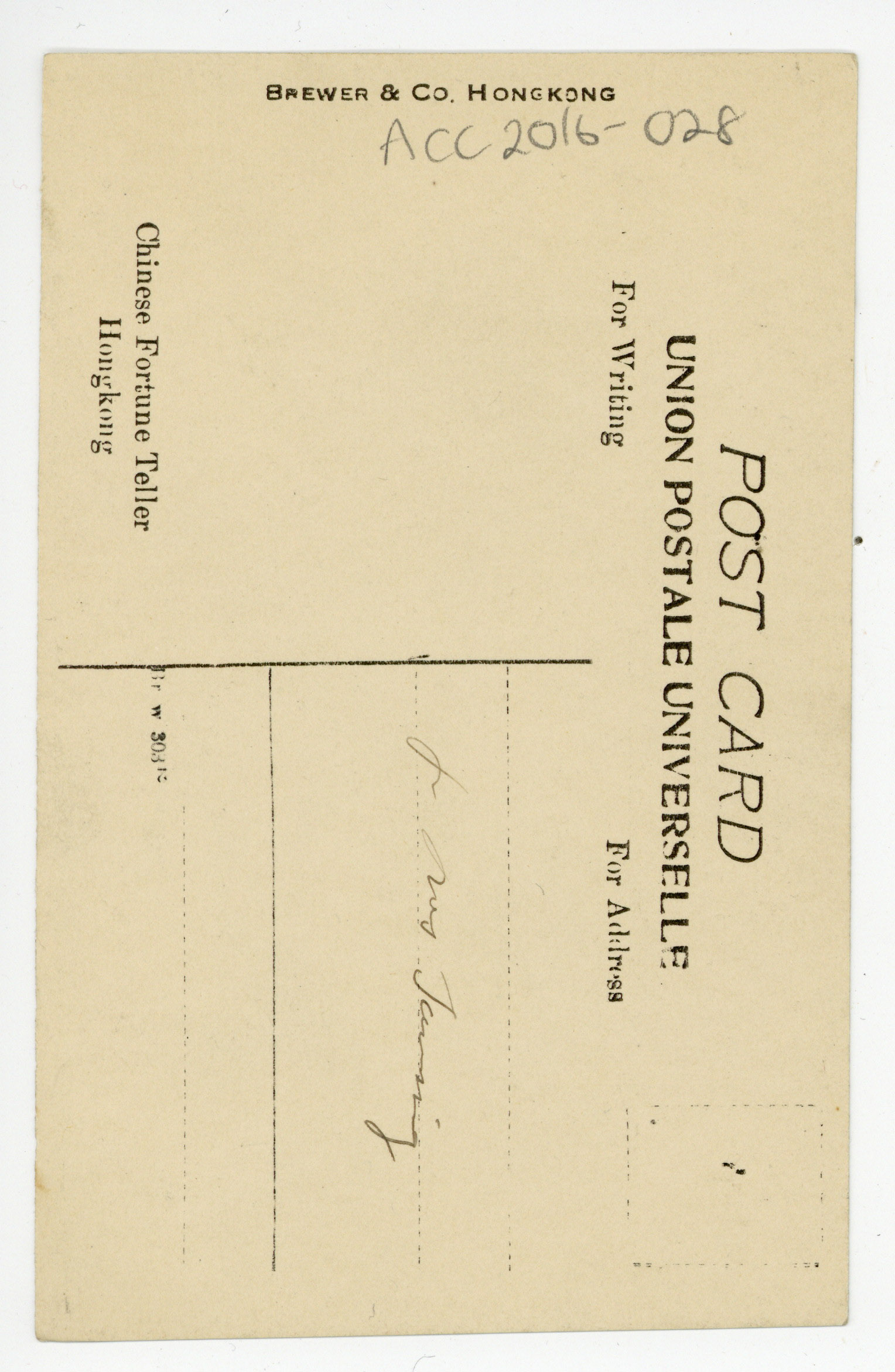 Chinese fortuneteller postcard, ca. 1923
