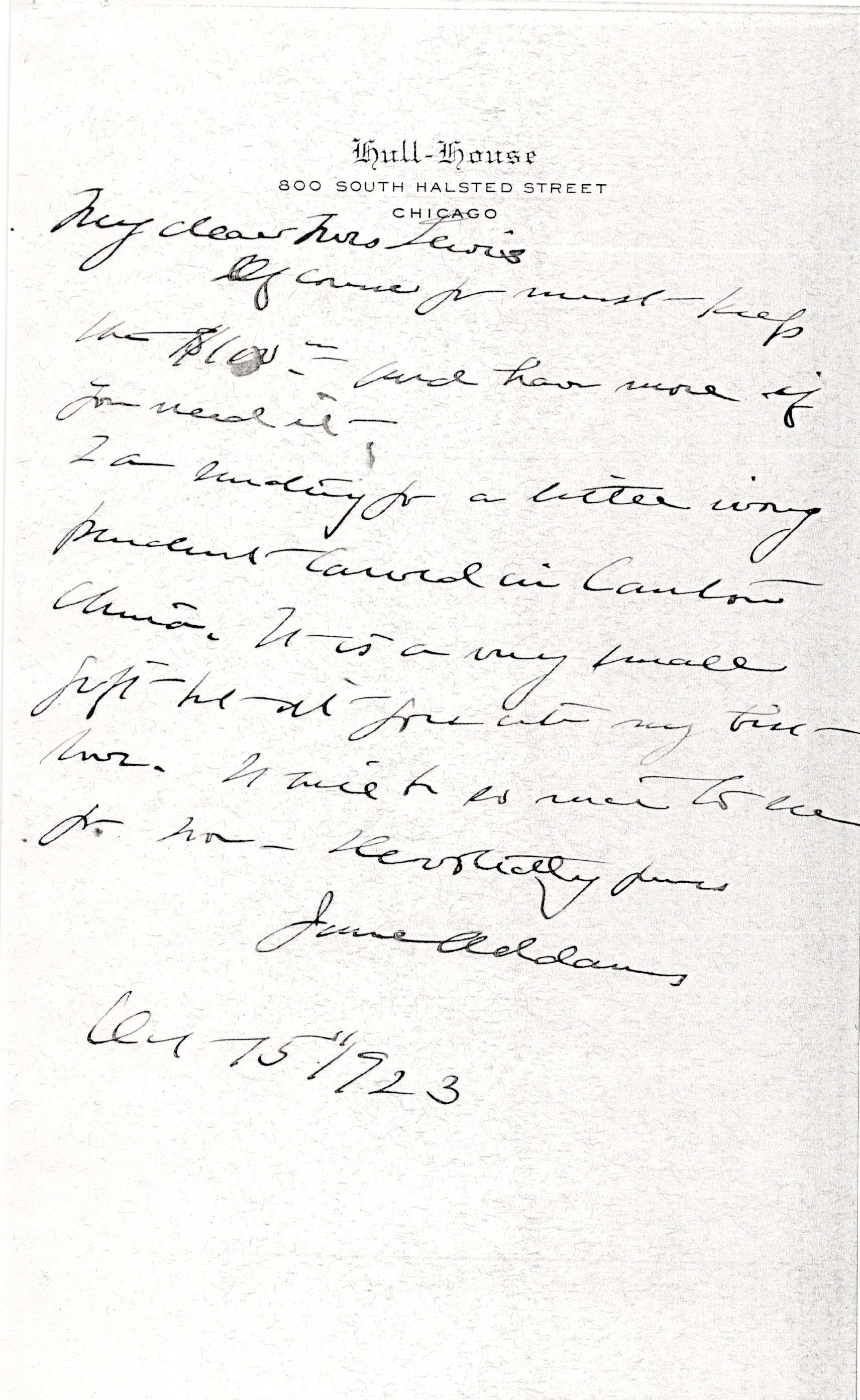 I am sending you a little ivory pendant carved in Canton China. It is a very small gift but it goes with my best love. It will be so nice to see you soon -- Devotedly yours