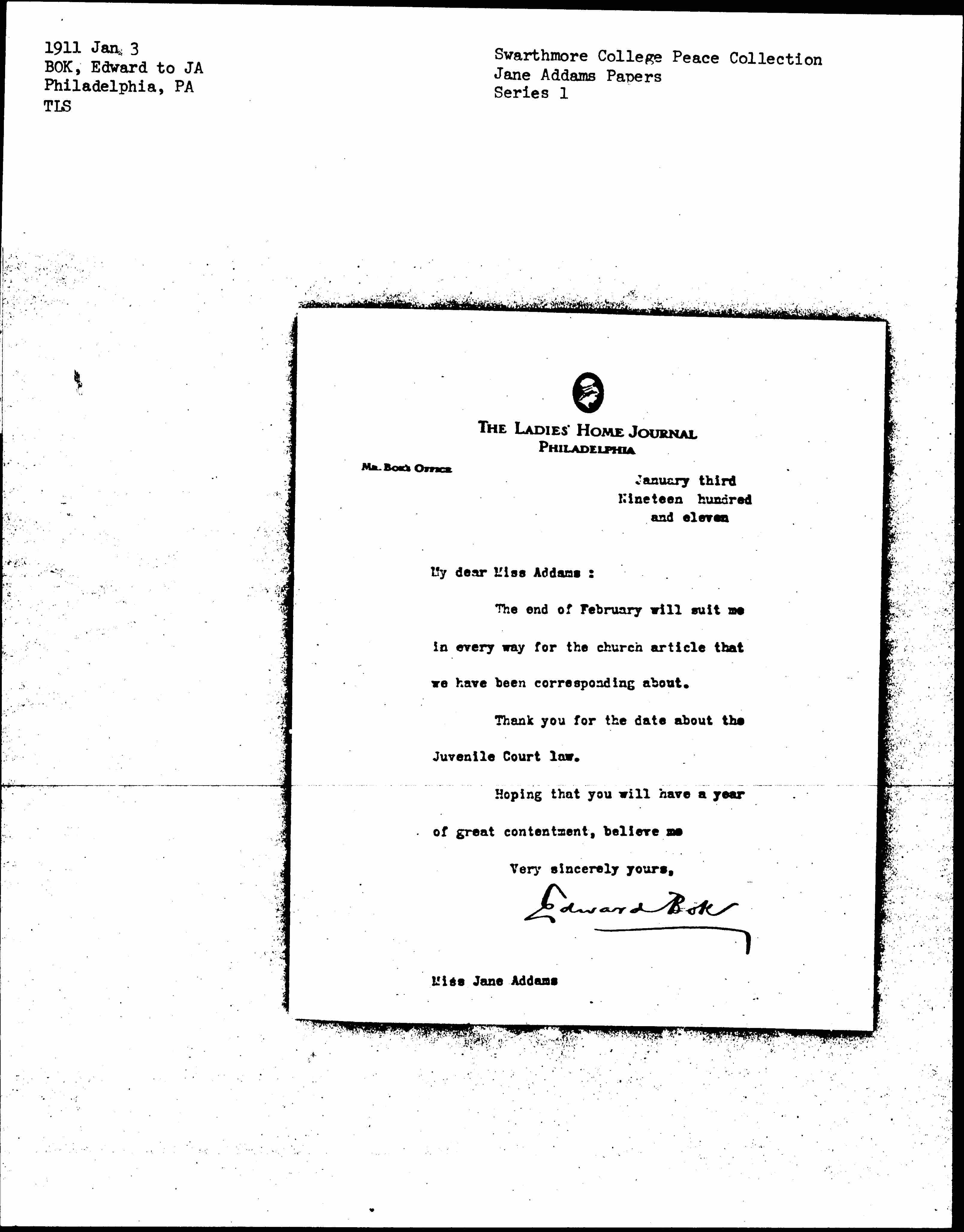 Edward Bok [signed]
