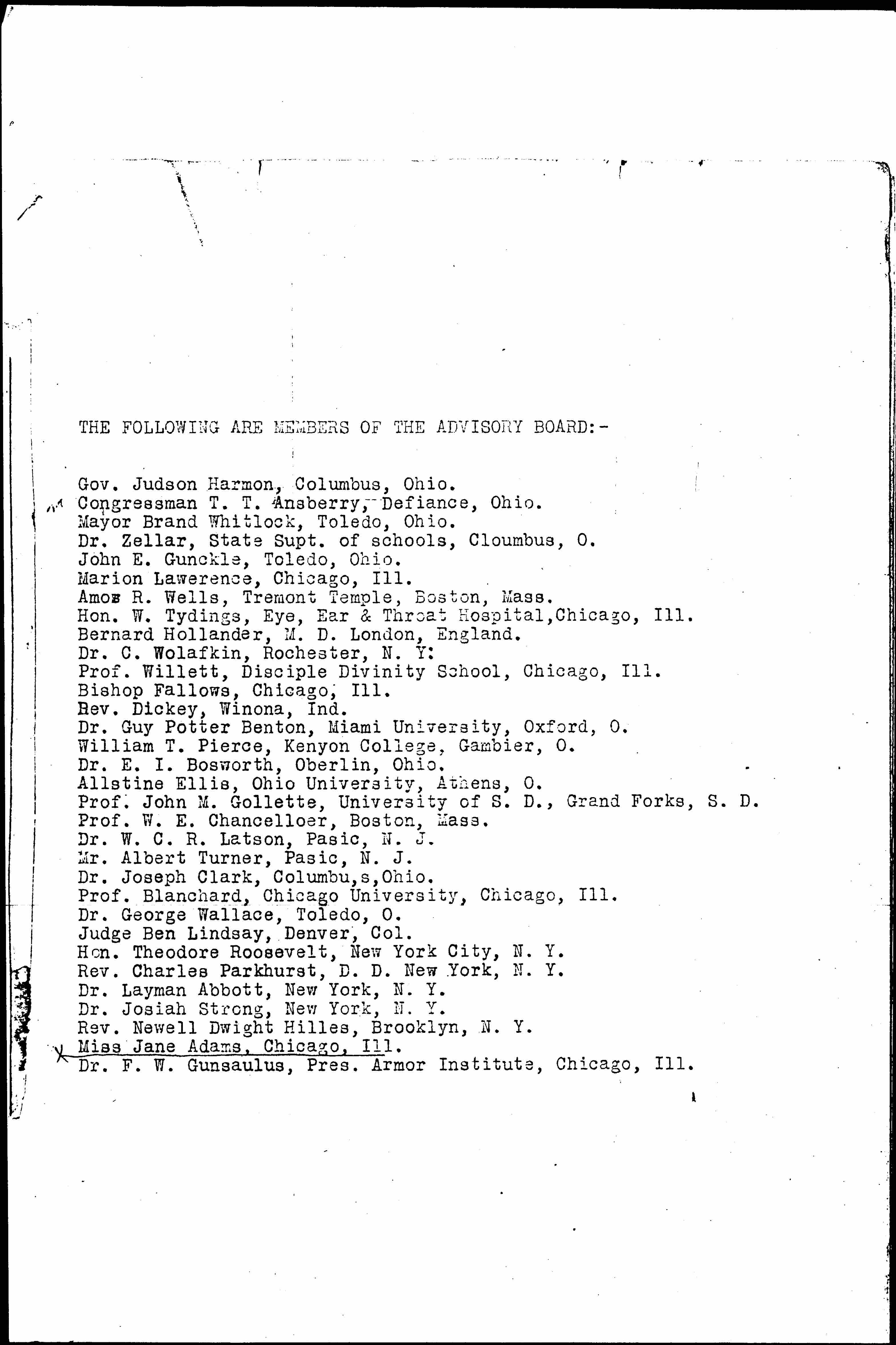 My dear Miss [Addams]: --