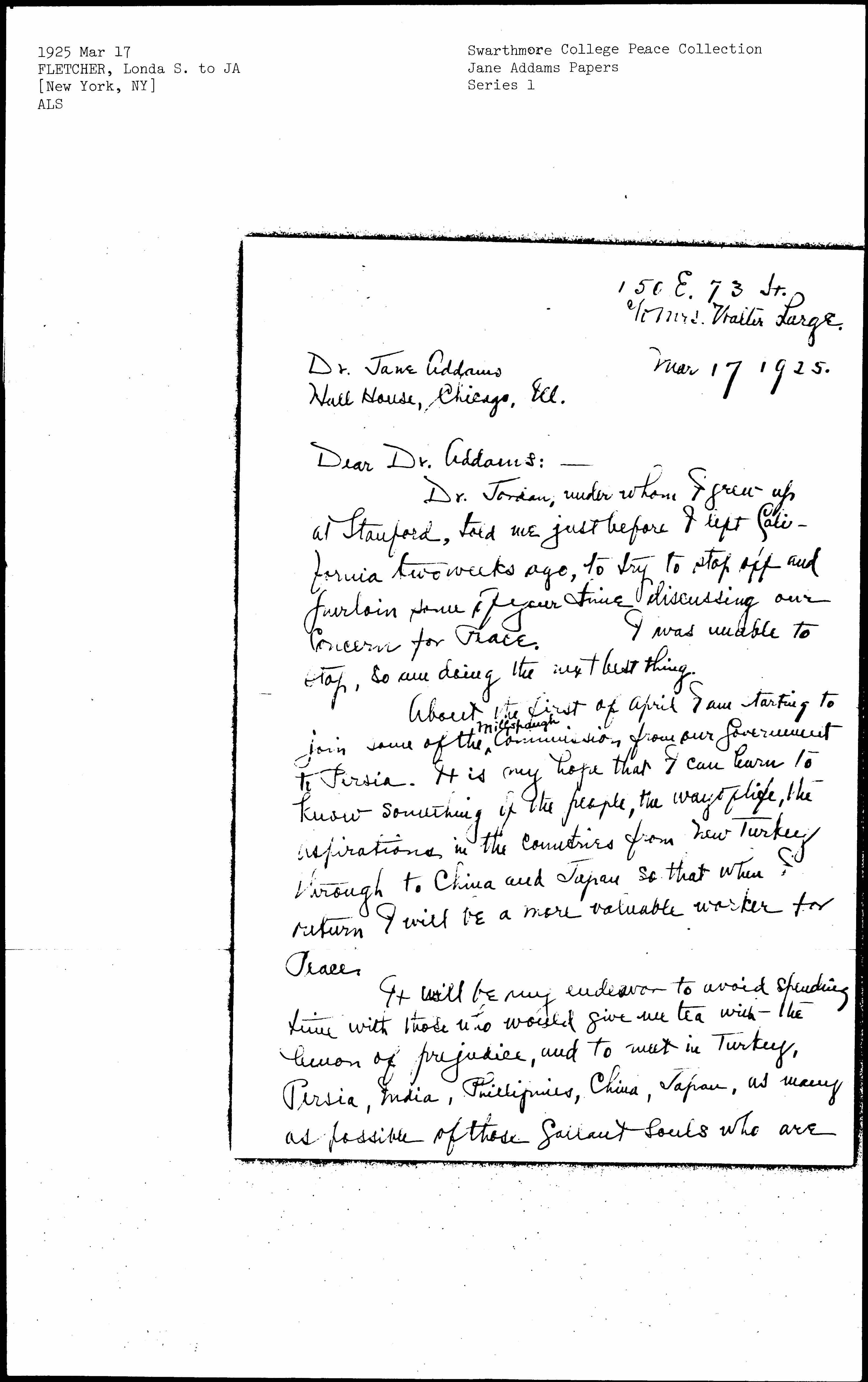 It will be my endeavor to avoid spending time with those who would give me tea with the lemon of prejudice, and to meet in Turkey, Persia, India, Philippines, China, Japan, as many as possible of those gallant souls who are [page 2] doing their bit for International understanding.