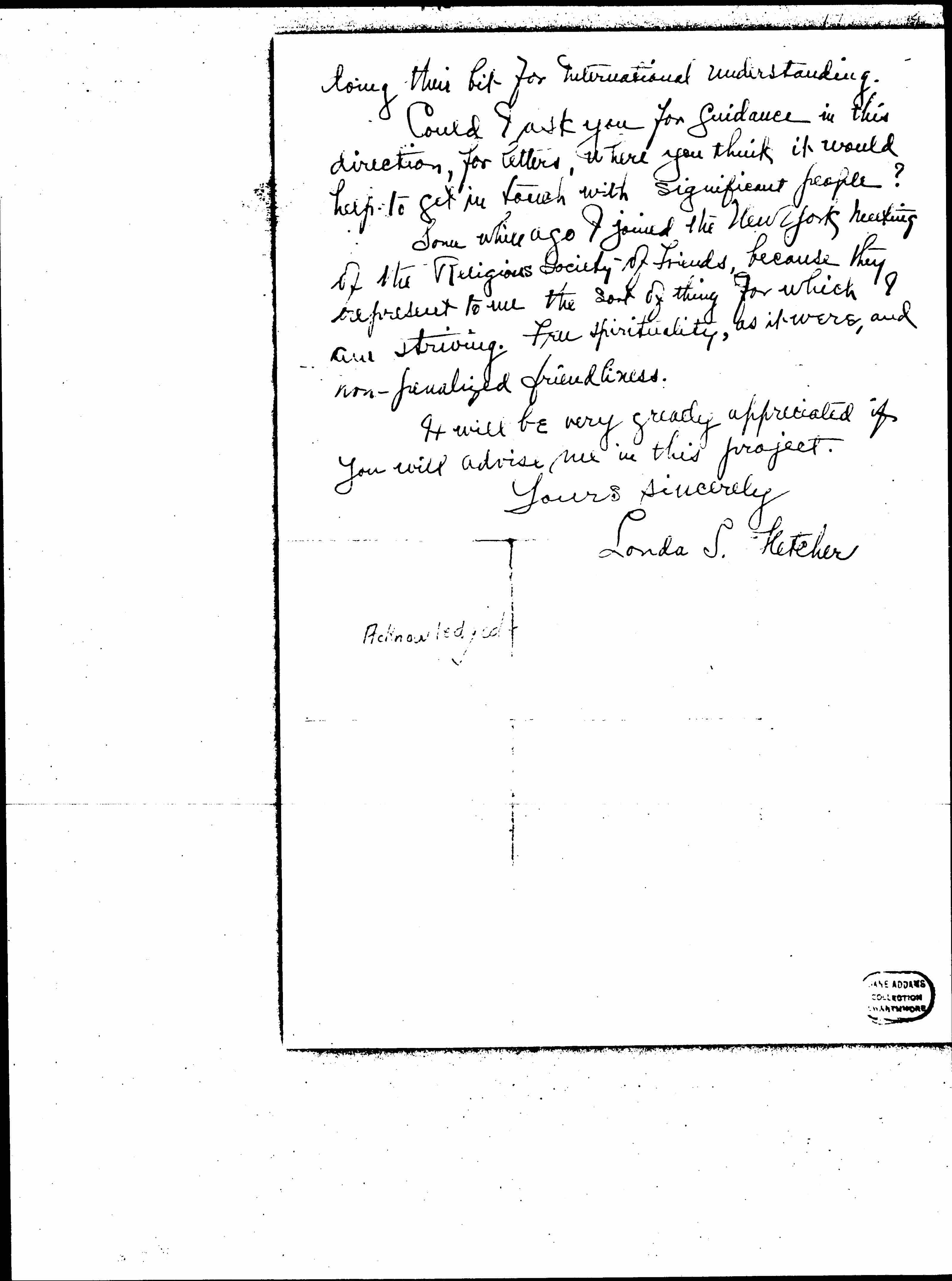 Some while ago I joined the New York meeting of the Religious Society of Friends, because they represent to me the sort of thing for which I am striving. Free spirituality, as it were, and non-penalized friendliness.It will be very greatly appreciated if you will advise me in this project.