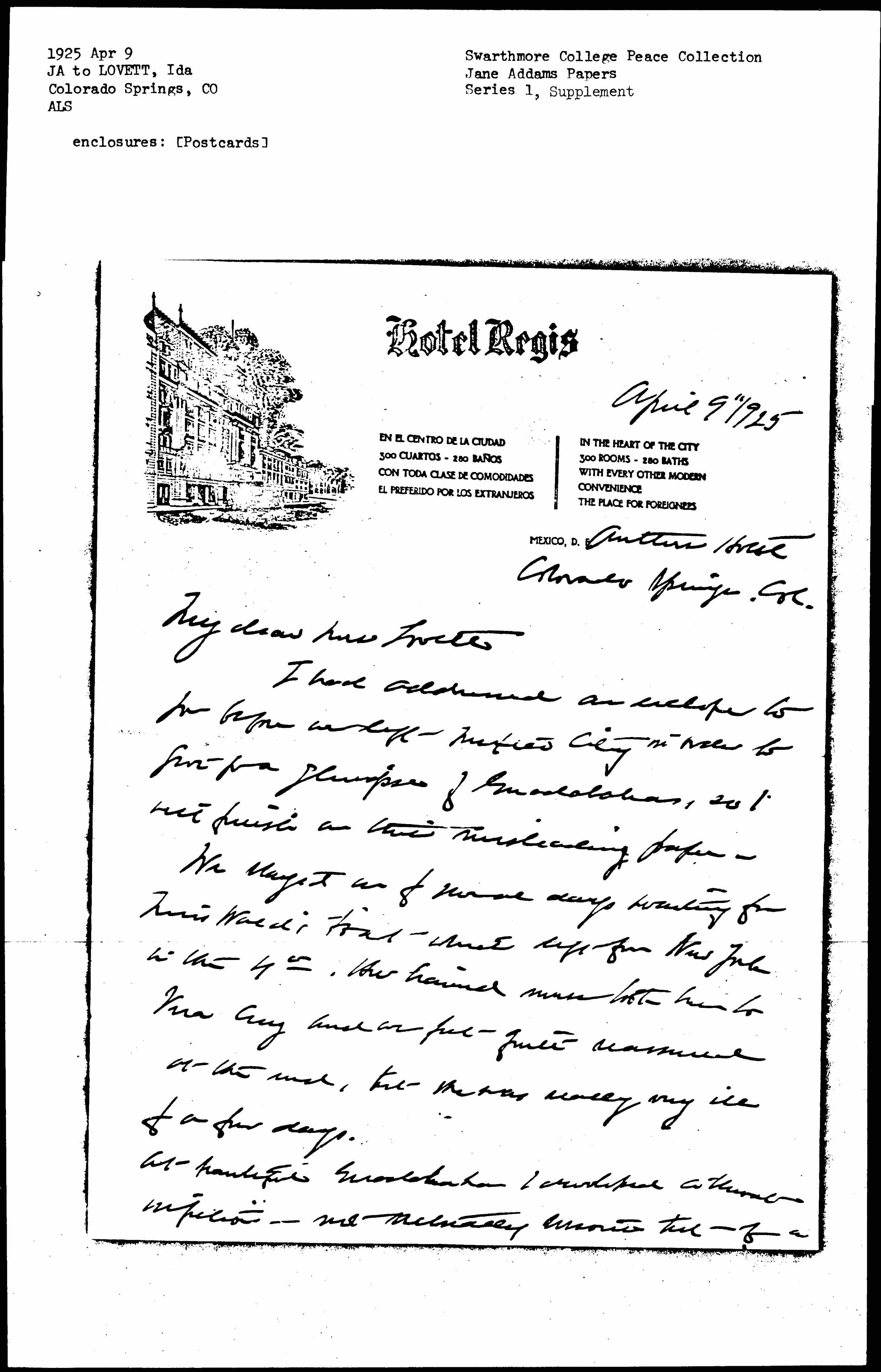 I had addressed an envelope to you before we left Mexico City in order to give you a glimpse of [Guadalajara], so I will finish on this misleading paper.