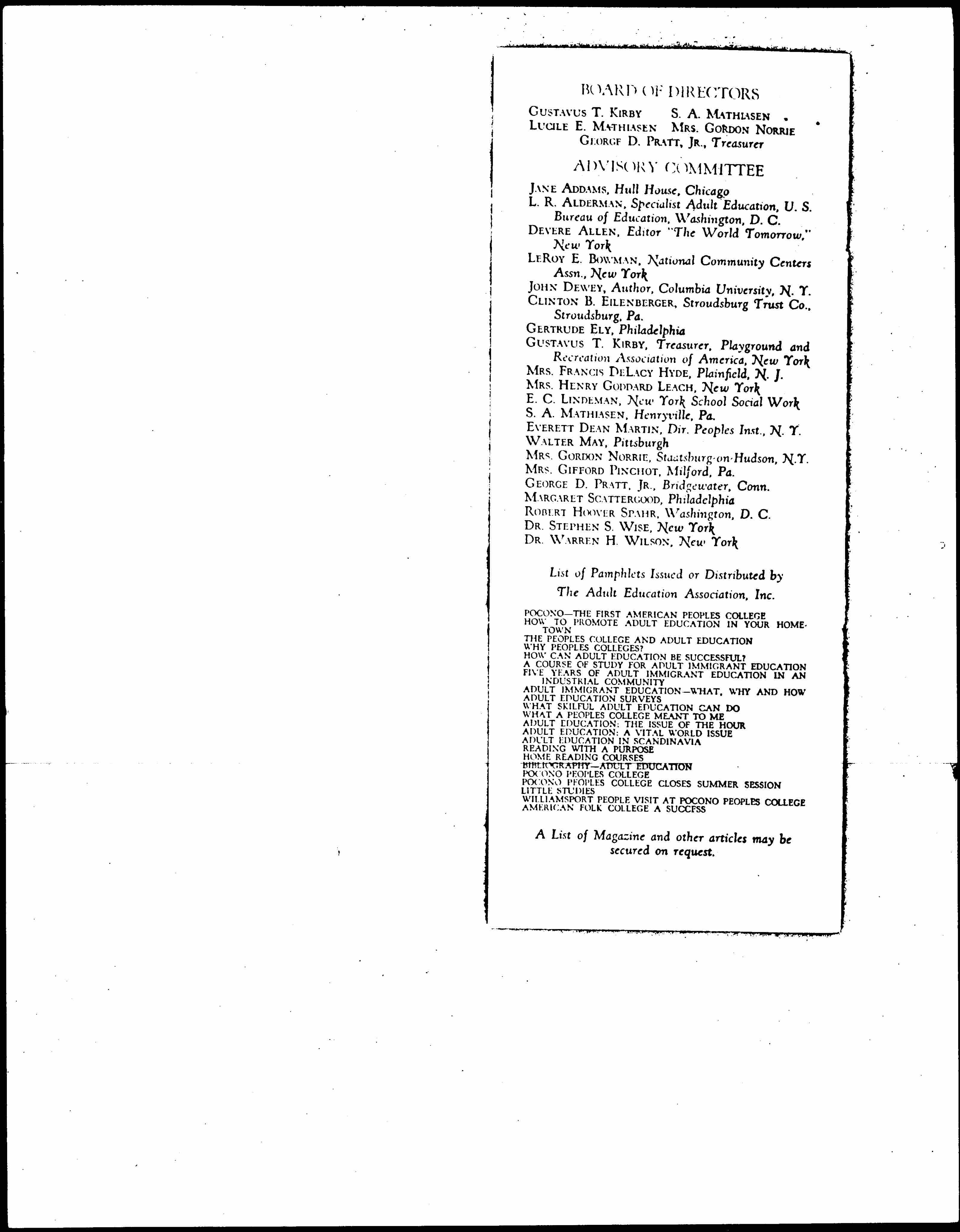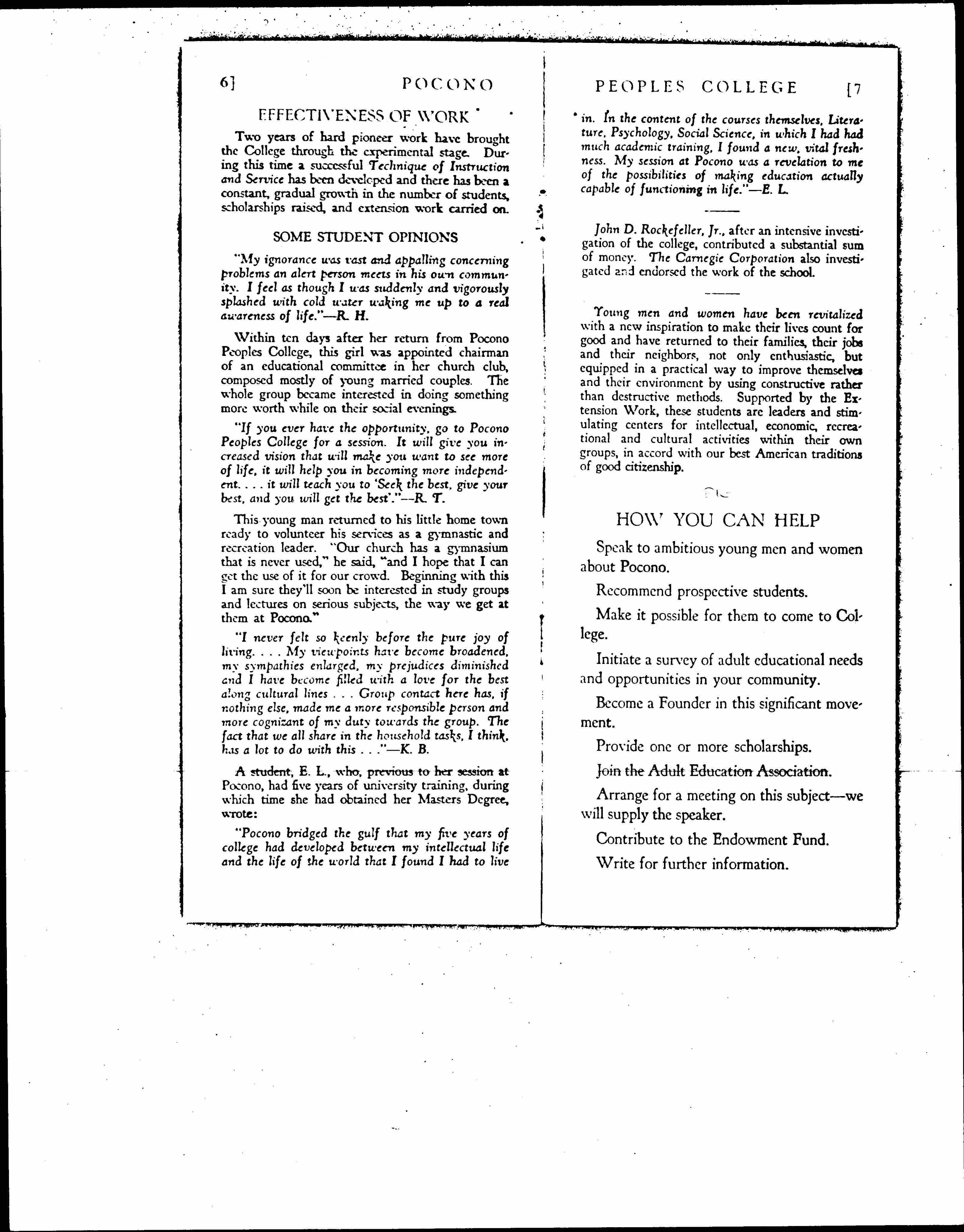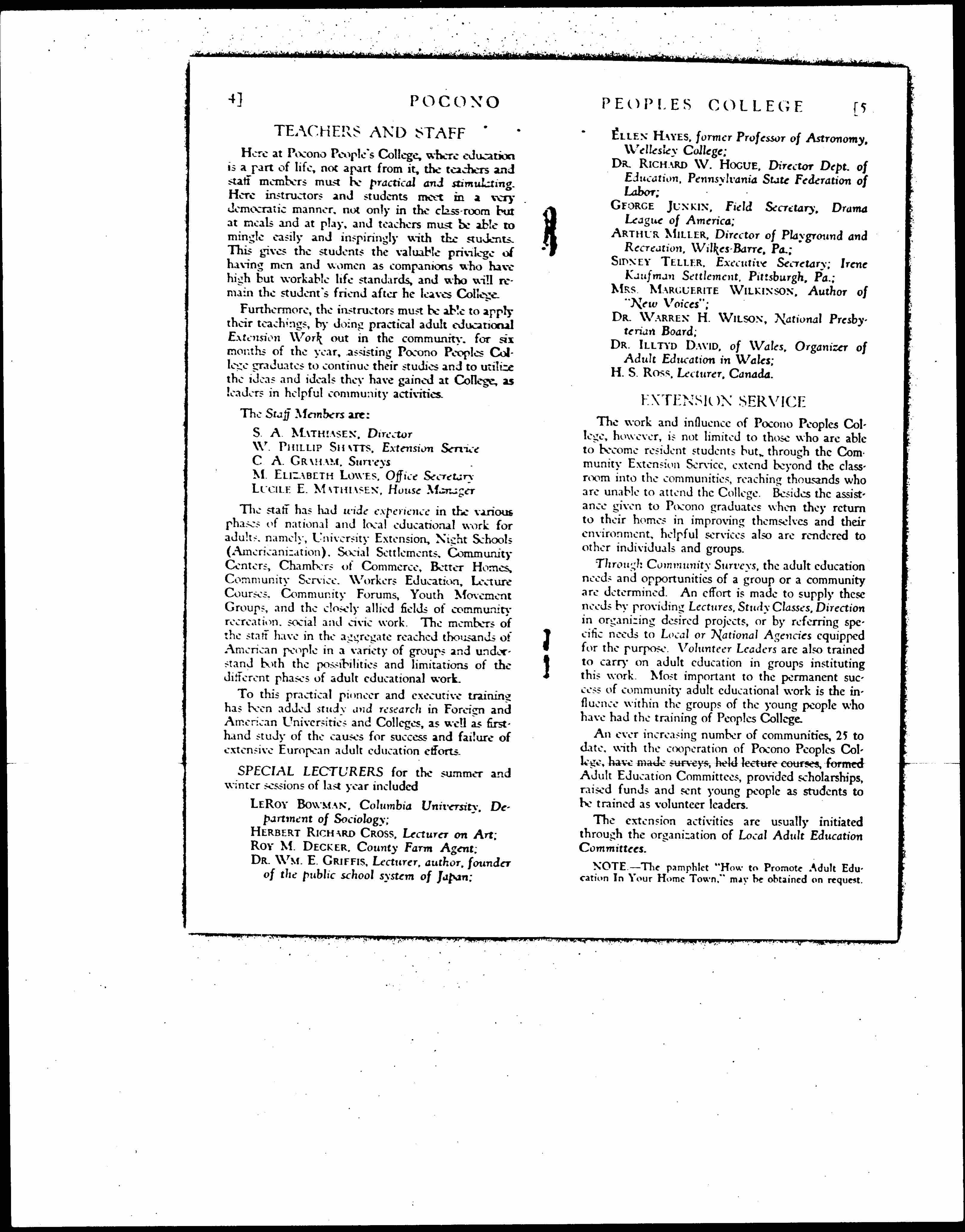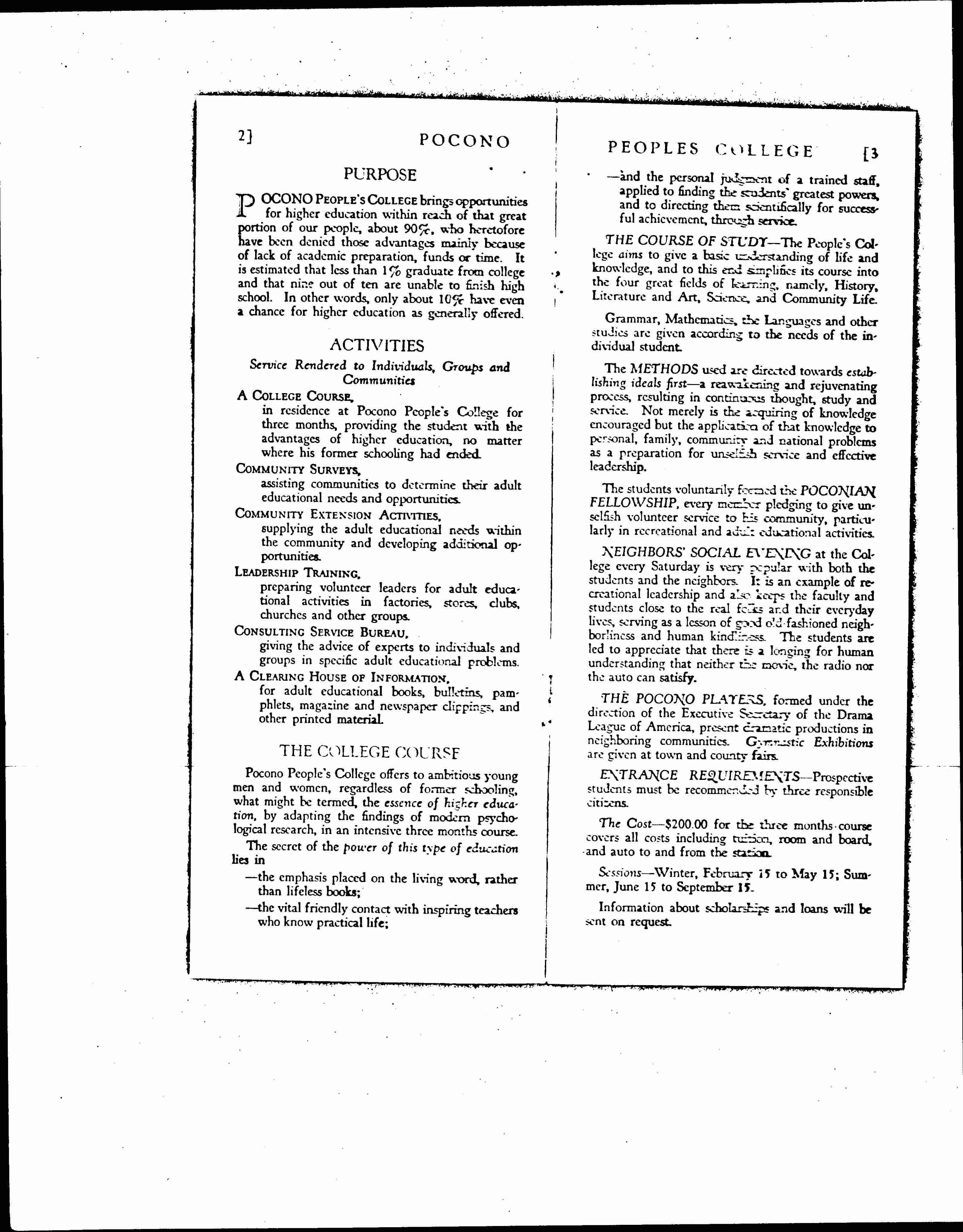 Pocono The First American People College, 1925