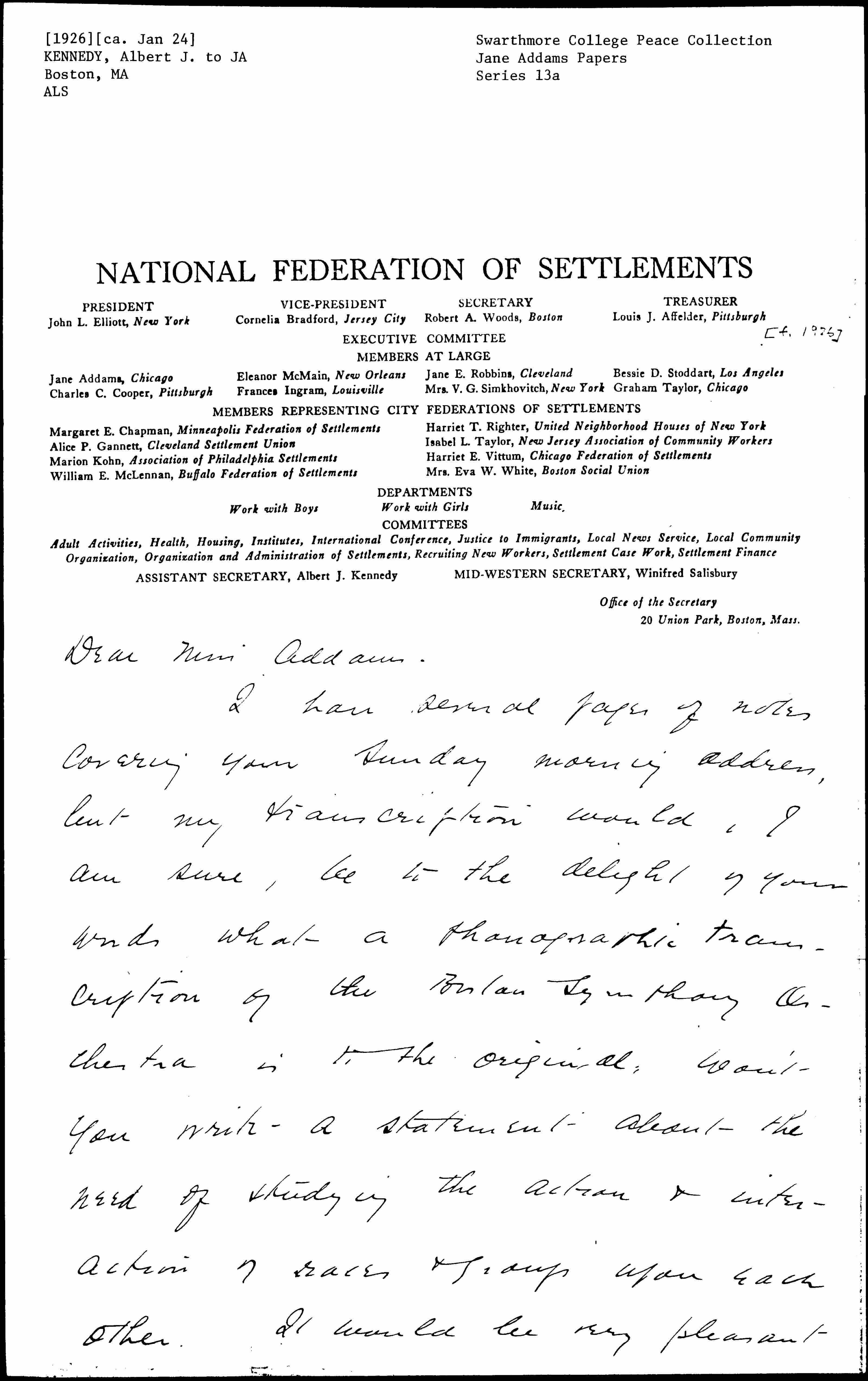 Dear Miss Addams --