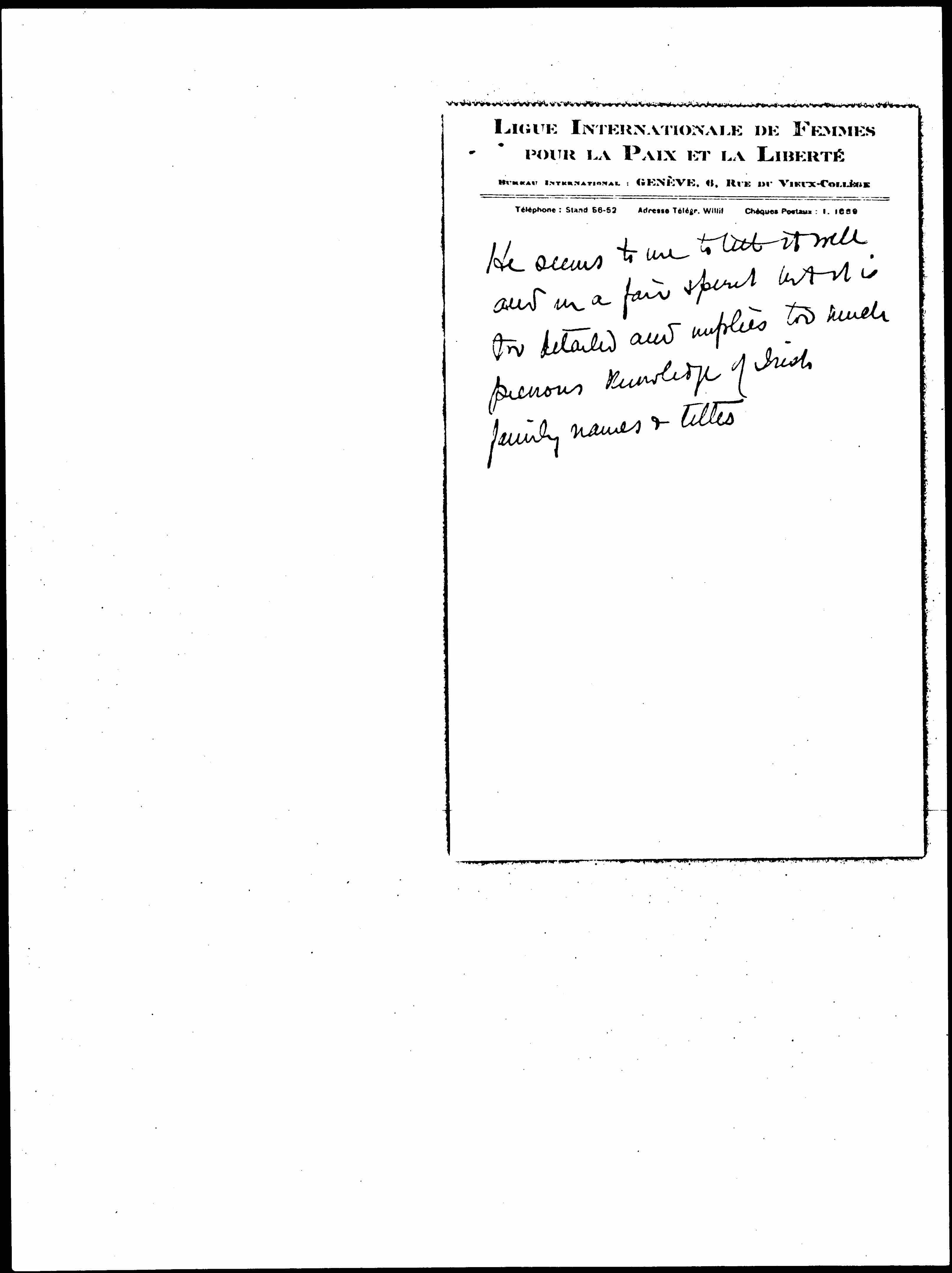 I think M Z D has never had any copy of the budget of the Geneva [house?] nor so far as I know did anyone talk this over with her. V. G has the budget [page 2] outline & may do so. I think it would be fine if you could send her (M D) in black & white your understanding of all this and also reply to her & V G. as to her & the Irish query about the Congress finances.