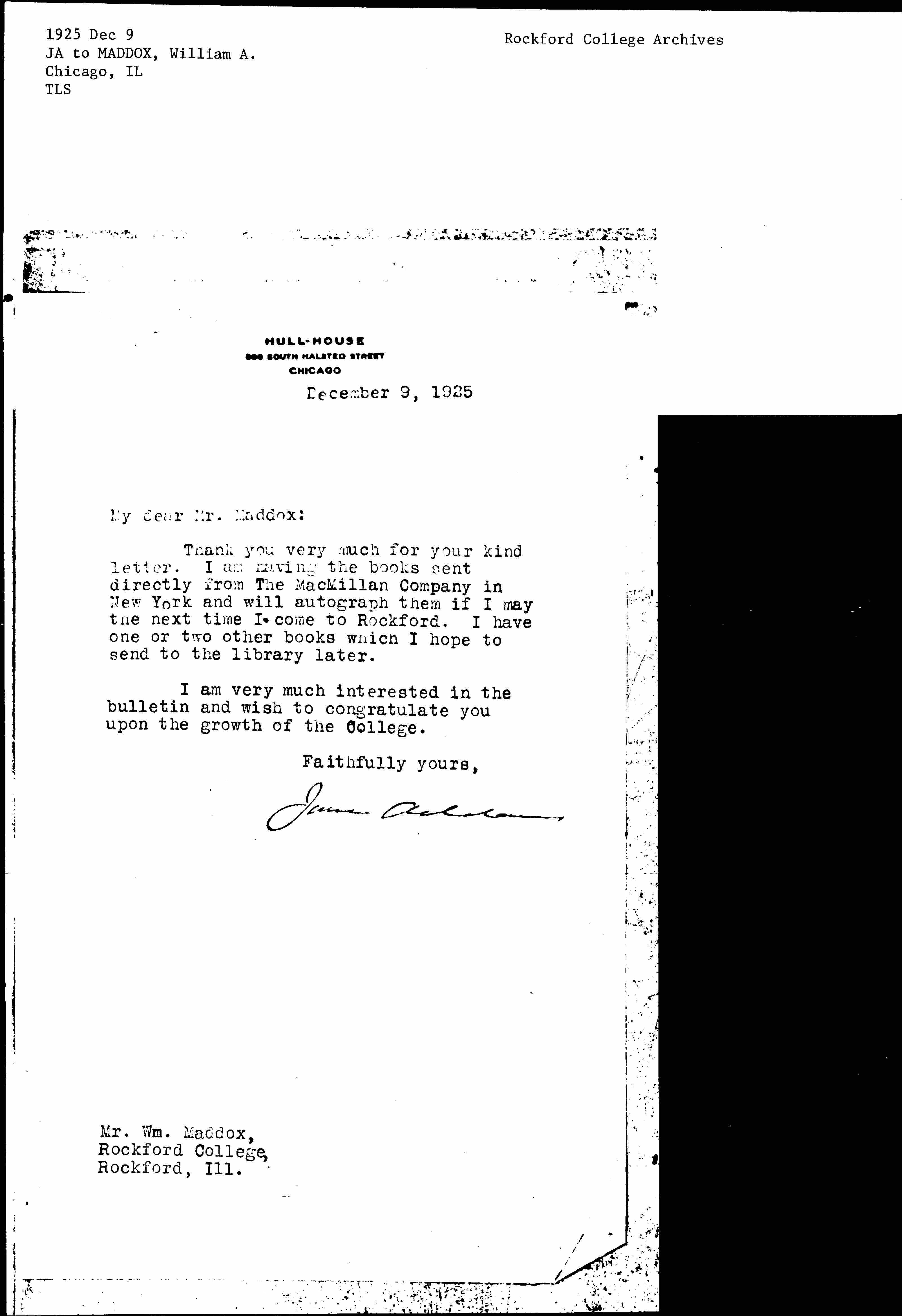 Jane Addams [signed]