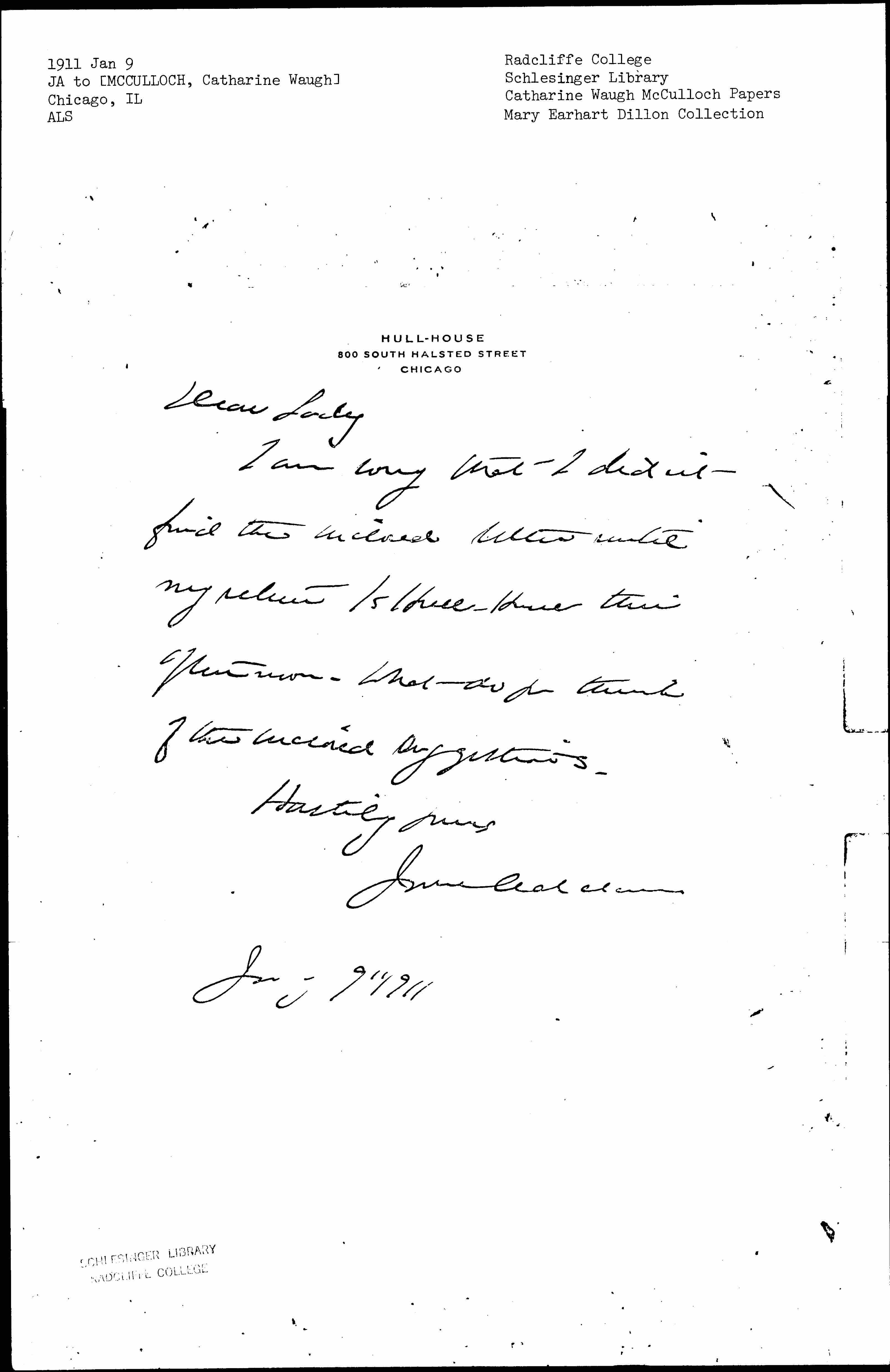 I am sorry that I didn't find the [enclosed] letter until my return to Hull-House this afternoon. What do you think of the enclosed suggestions.