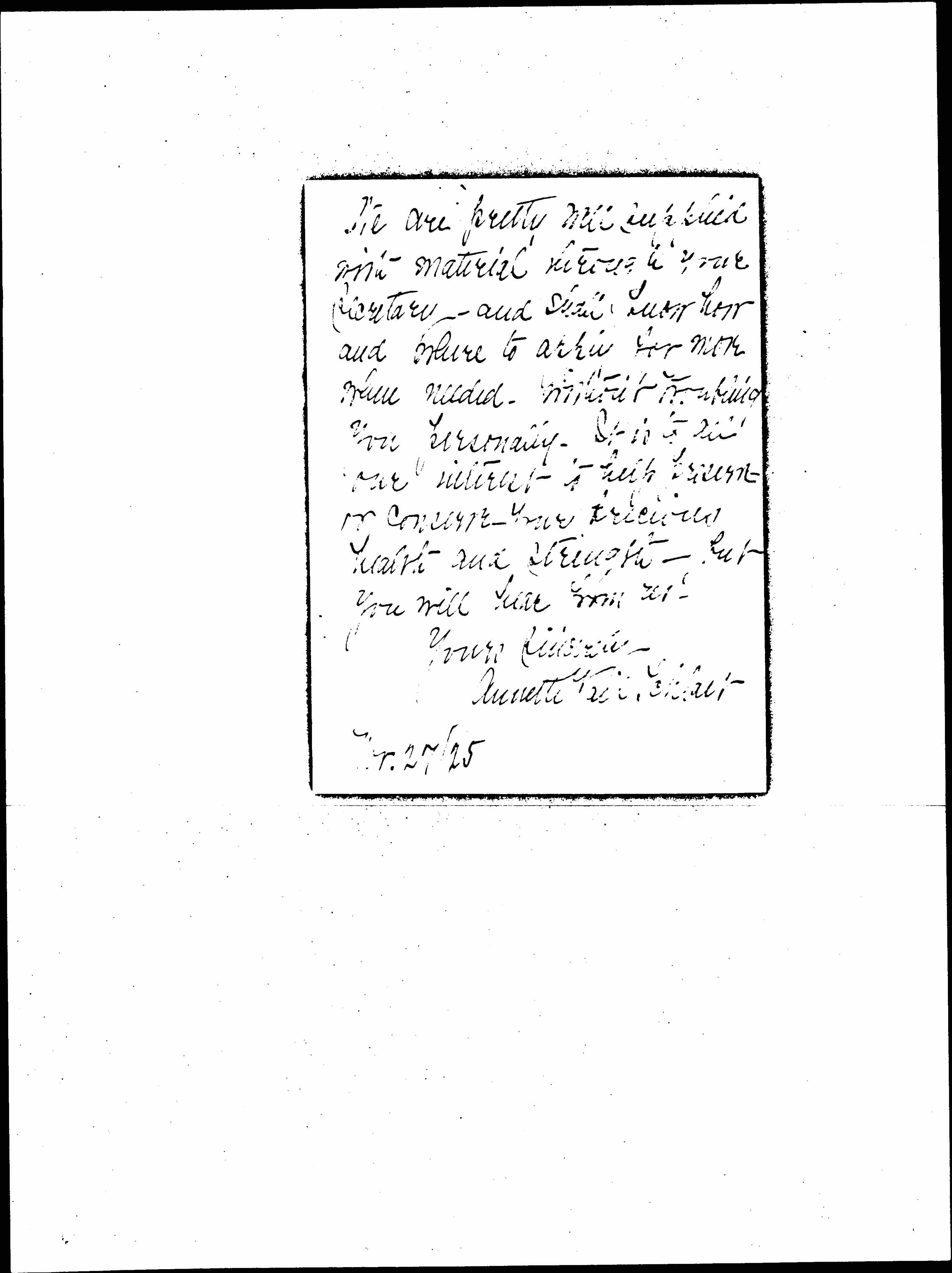 [page 3] We are pretty well supplied with material through your secretary and shall show how and where to apply for more when needed -- without us asking you personally. It is to all our interest to help preserve & conserve your precious health and strength- but you will hear from us!