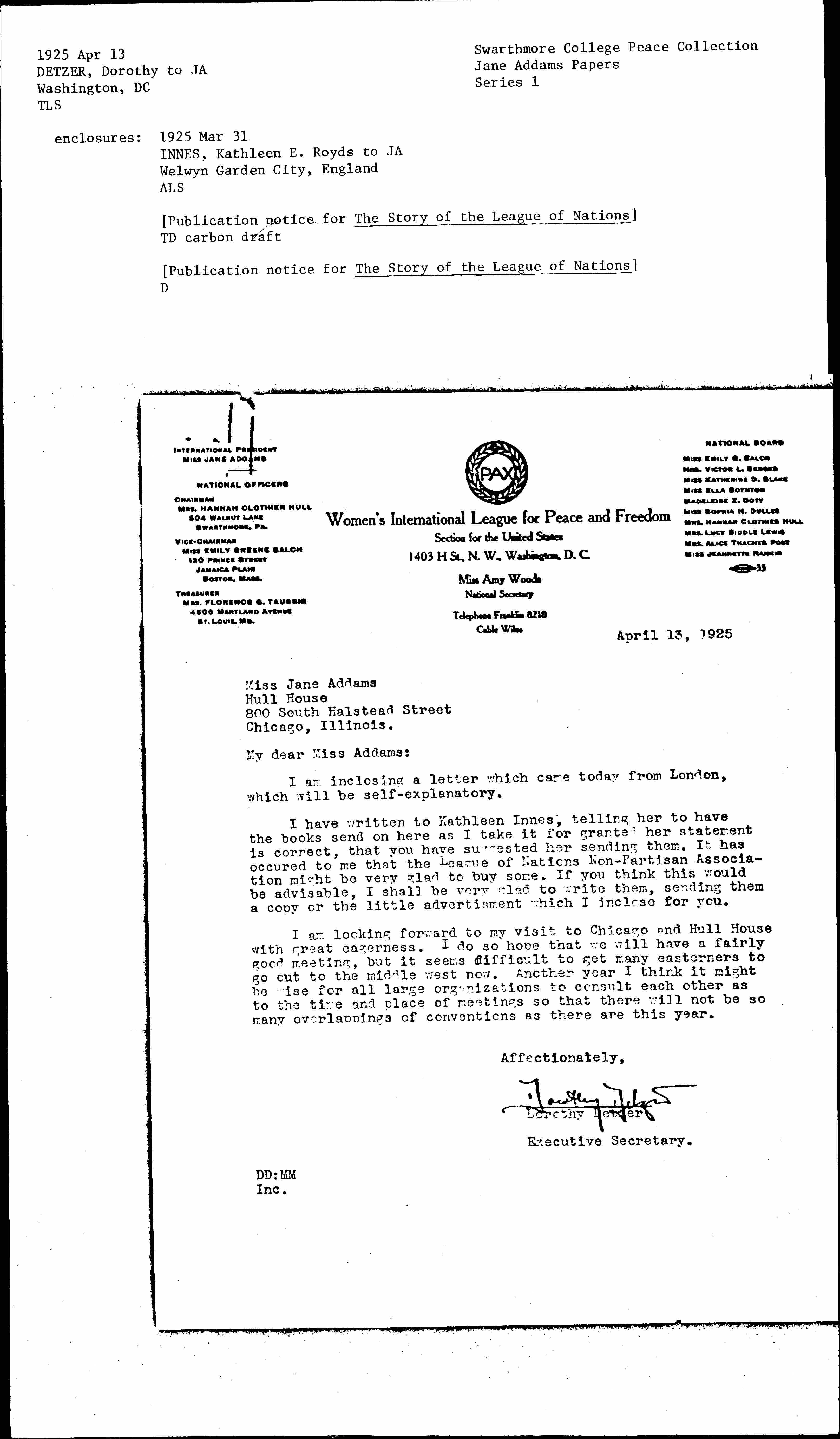 I have written to Kathleen Innes, telling her to have the books send on here as I take it for granted her statement is correct, that you have suggested her sending them. It has occurred to me that the League of Nations Non-Partisan Association might be very glad to buy some. If you think this would be advisable, I shall be very glad to write them, sending them a copy or the little advertisement which I [enclose] for you.