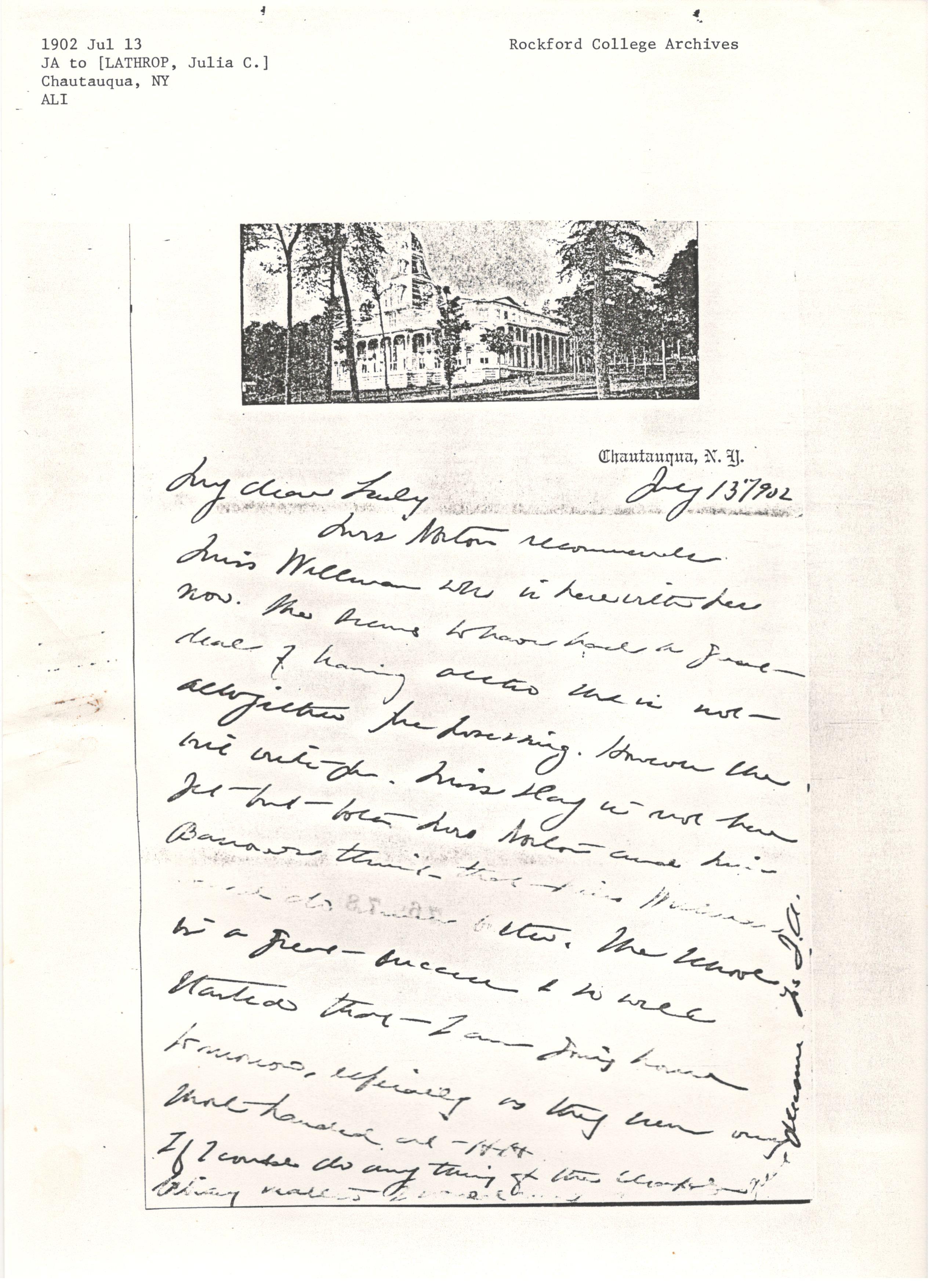 Mrs Norton recommends Miss Wallman who is here with her now. She seems to have had a great deal of [training] [although] she is not altogether prepossessing. However she will write you. Miss Day is not here yet but both Mrs Norton and Miss Barrows think that Miss Wellman [illegible] do [much?] better. The school is a great success & so well started that I am going home tomorrow, especially as they seem very short handed at H.H.