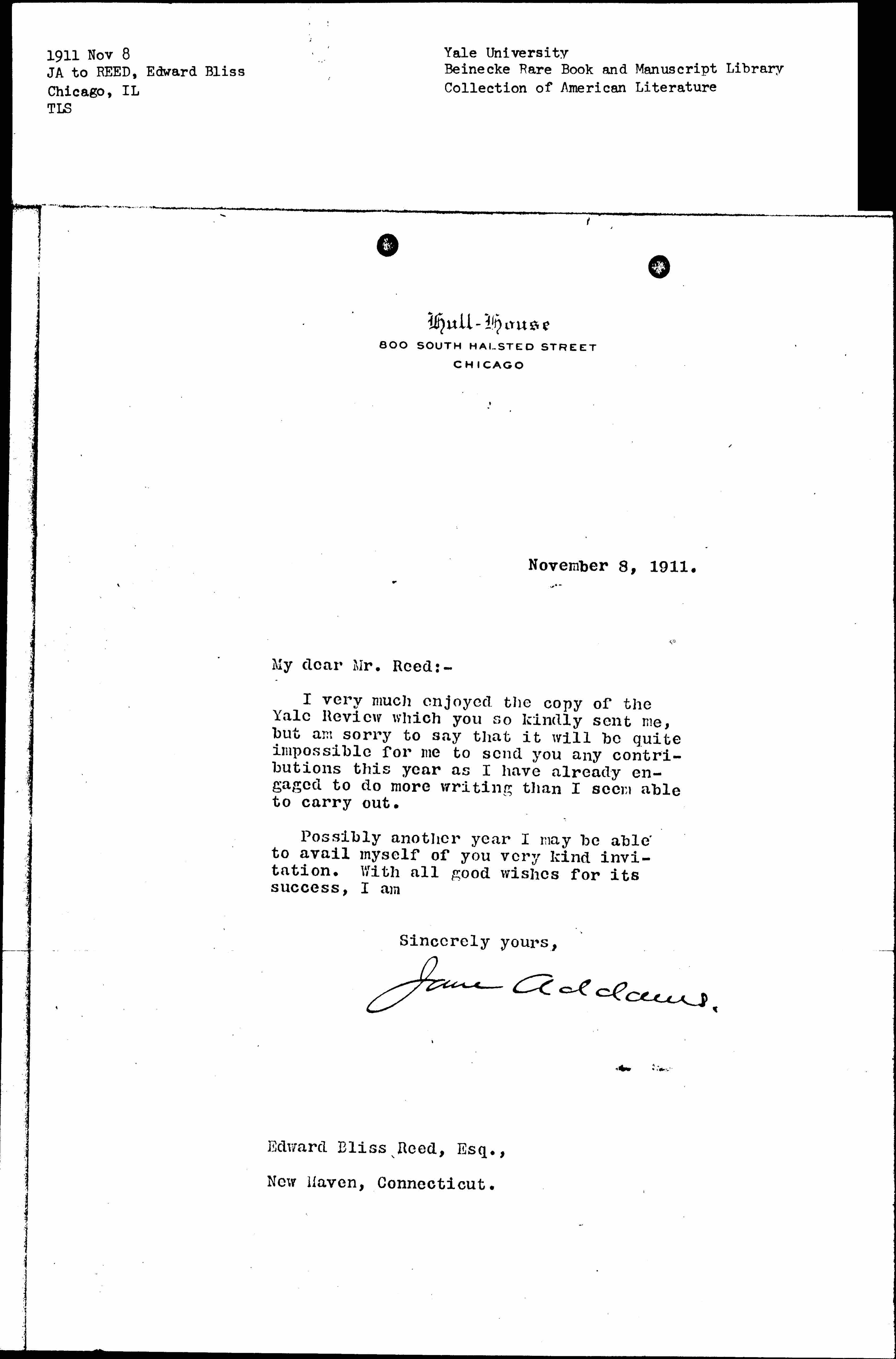 Jane Addams [signed]