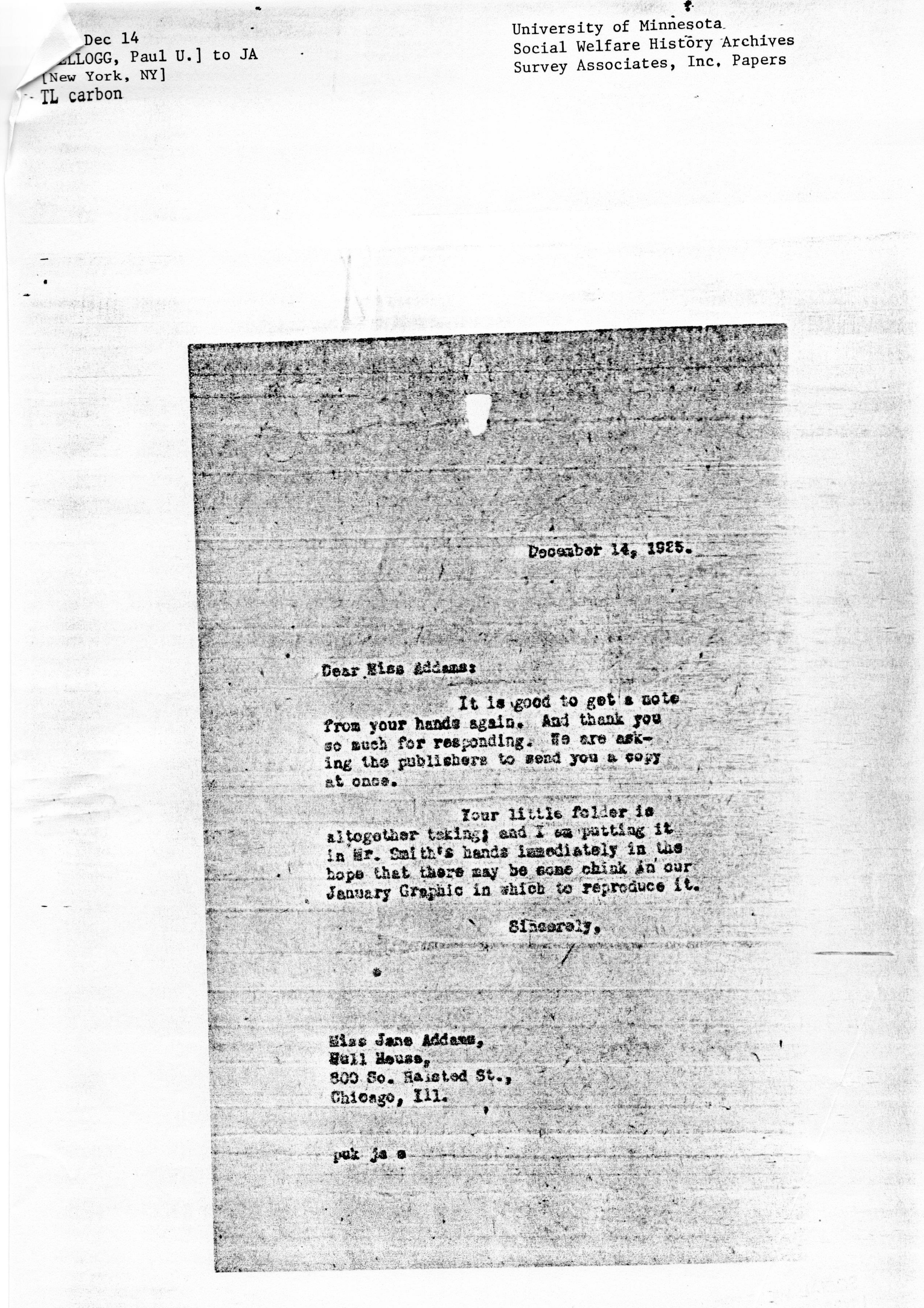 Dear Miss Addams: