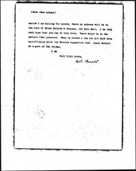 I am asking Mr. Harcourt of Henry Holt & Company to send you certain volumes which I think you might, in any event, be interested in, whether you are able or not to undertake a book yourself. Tomorrow [page 2] I am sailing for London, where my address will be in the case of Brown Shipley & Company, 123 Pall Mall. I do very much hope that you can do this book. There would be no immediate time pressure. When in London I can let you know more specifically about the British suggestion that Canon [Barnett] do a part of the volume.