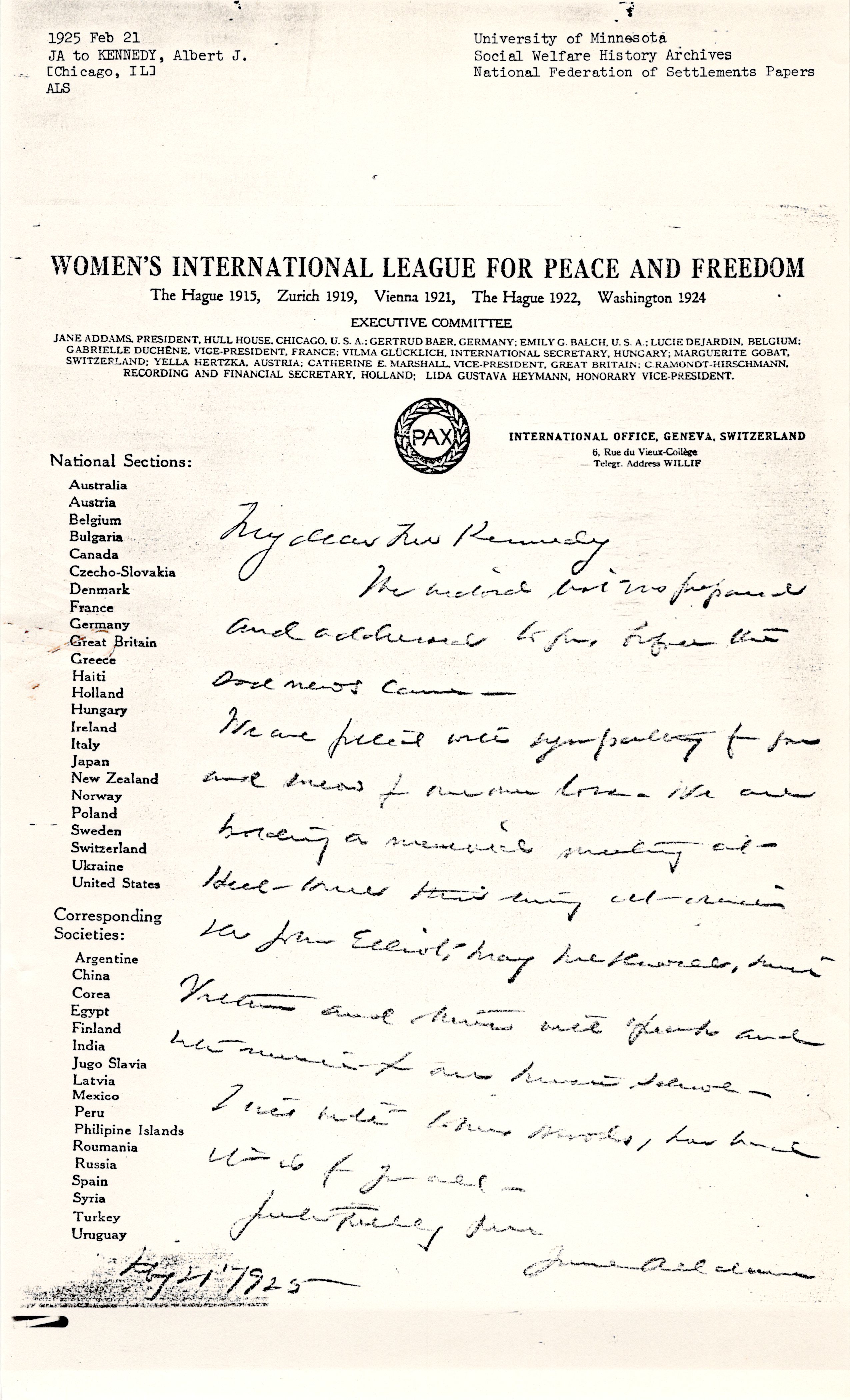 WOMEN'S INTERNATIONAL LEAGUE FOR PEACE AND FREEDOM