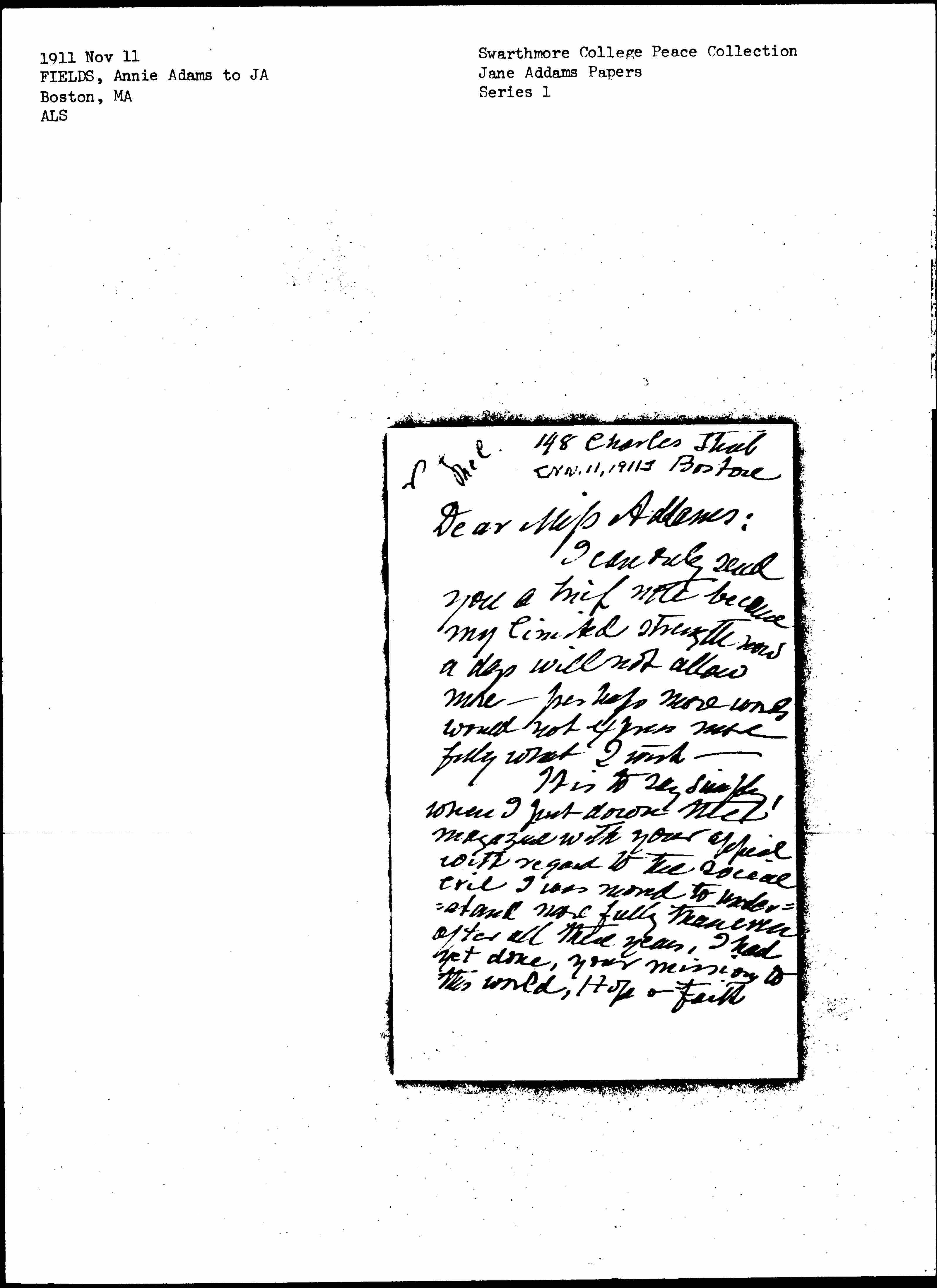 Dear [Miss] Addams:
