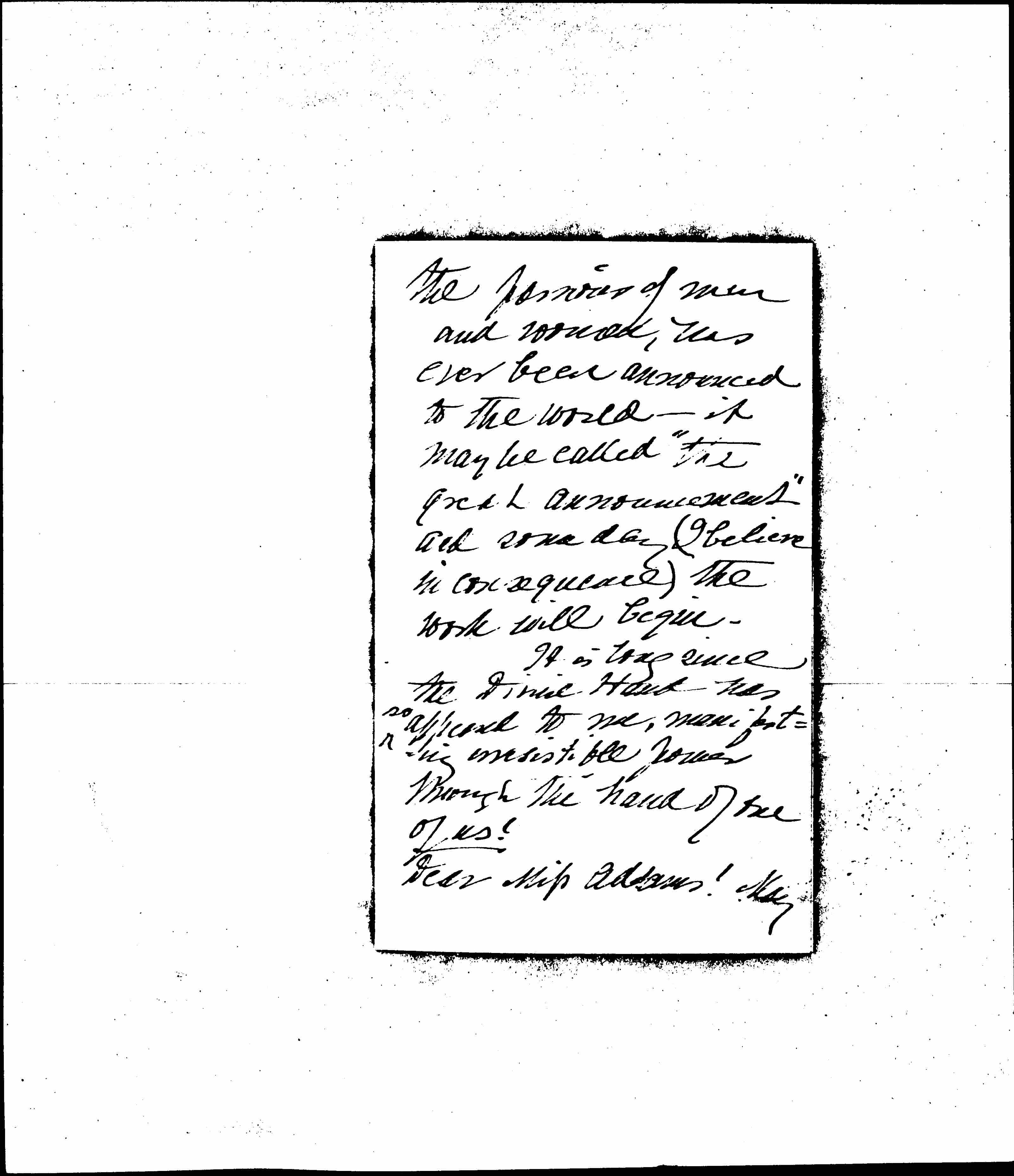 It is long since the timid Hand was <so> appeared to me, manifesting irresistible power through the hand of one of us!