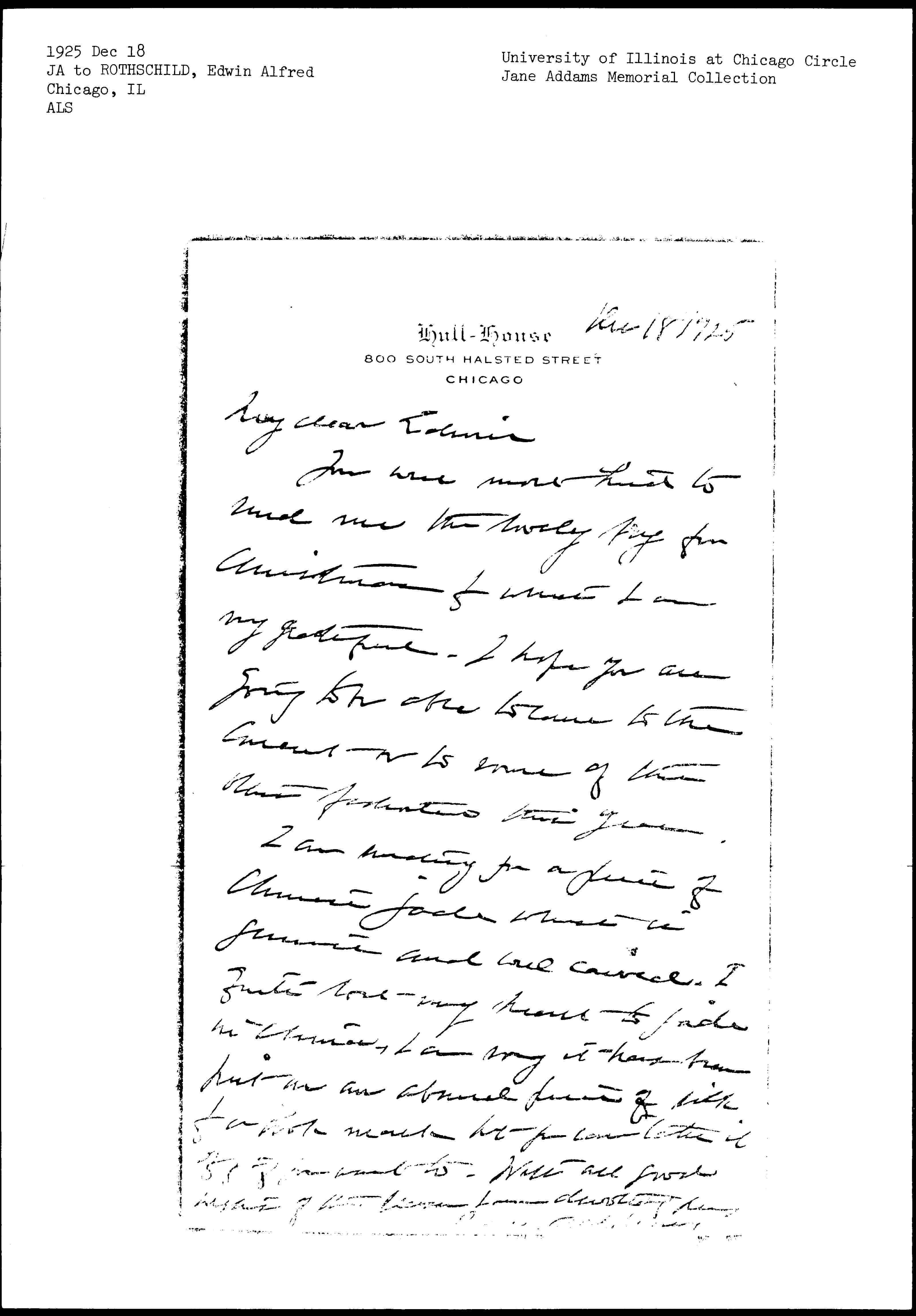 I am sending you a piece of Chinese jade which is genuine and well carved. I quite lost my heart to jade in China, I am sorry it has been put in an absurd piece of silk for a book mark but you can take it off if you want to. With all good wishes of the season I [am] devotedly yours