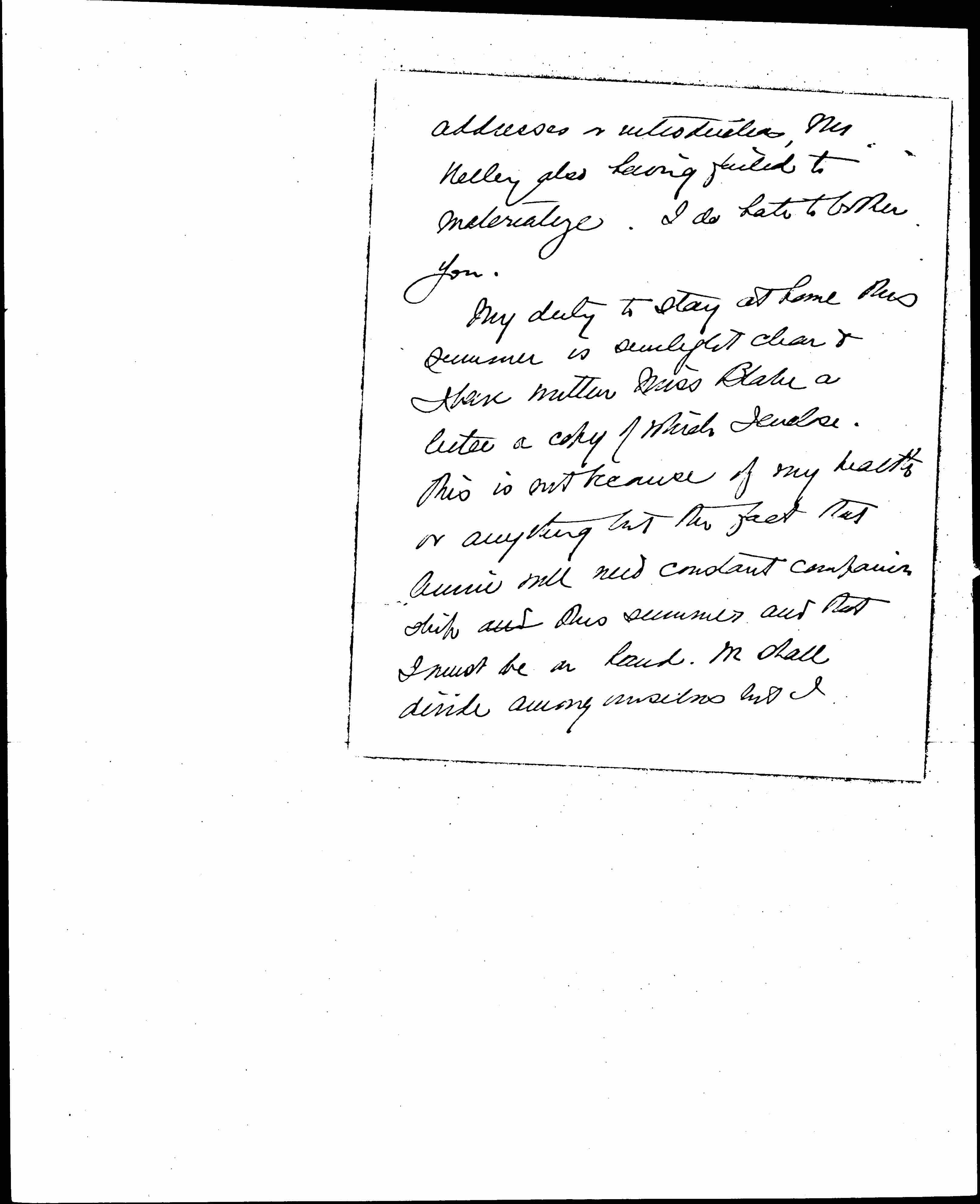 My duty to stay at home this summer is sunlight clear & I have written Miss Blake a letter a copy of which I enclose.
