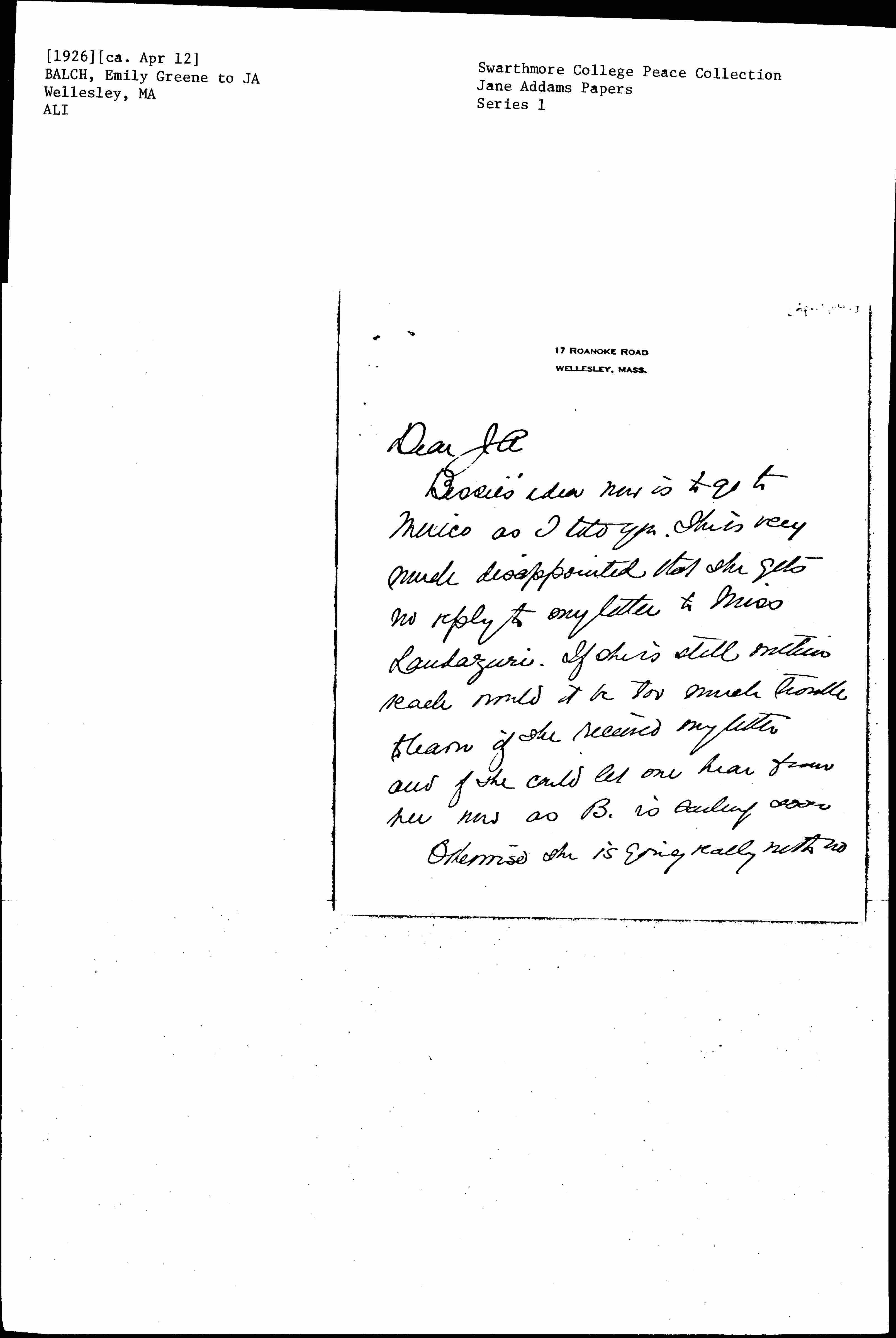 Bessie's idea now is to go to Mexico as I told you. She is very much disappointed that she gets no reply to my letter to Miss Landazuri. If she is still within reach would it be too much trouble to learn if she received my letter and if she could let one hear from her now as B. is sailing soon