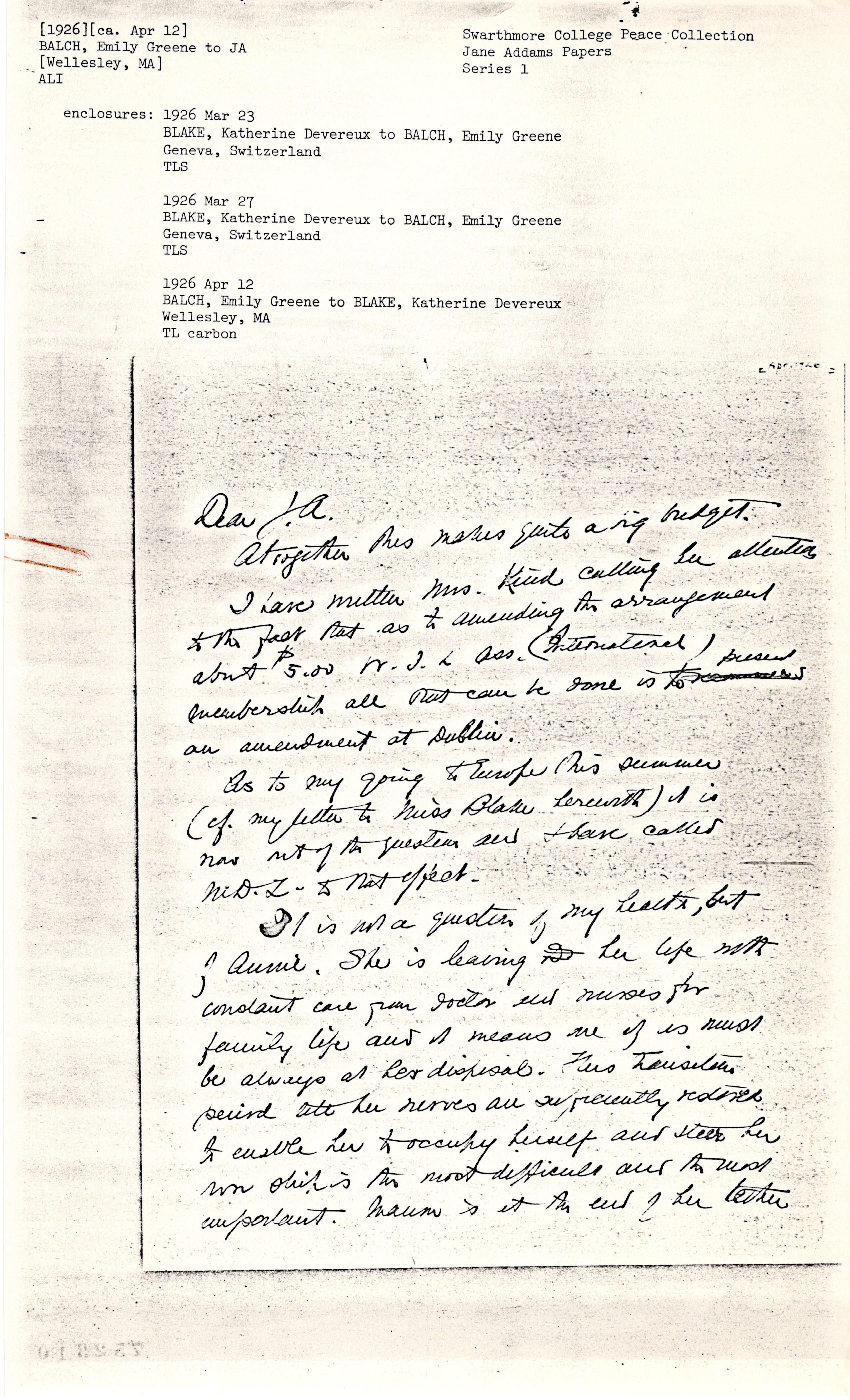 I have written Mrs. Kind calling her attention to the fact that as to amending the arrangement about $5.00 W.I.L Ass. (International) membership all that can be done is to remember ↑present↓ an amendment at Dublin.
