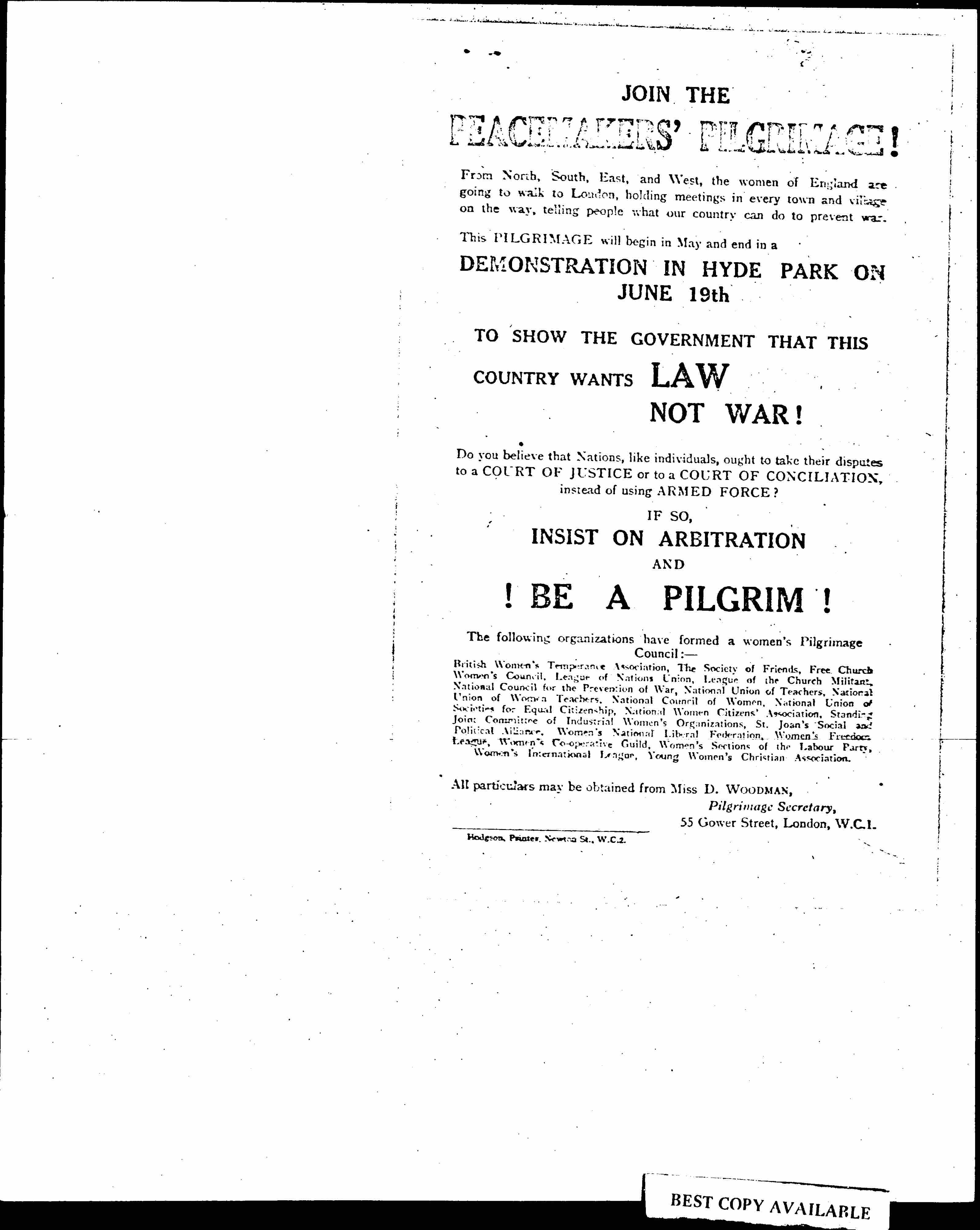 British Women's Temperance Association, The Society of Friends, Free Church Women's Council, League of Nations Union, League of the Church Militant, National Council for the Prevention of War, National Union of Teachers, National Union of Women Teachers, National Council of Women, National Union of Societies for Equal Citizenship, National Women Citizens' Association, Standing Joint Committee of Industrial Women's Organizations, St. Joan's Social and Political Alliance, Women's National Liberal Federation, Women's Freedom League, Women's [Cooperative] Guild, Women's Sections of the Labour Party, Women's International League, Young Women's Christian Association.