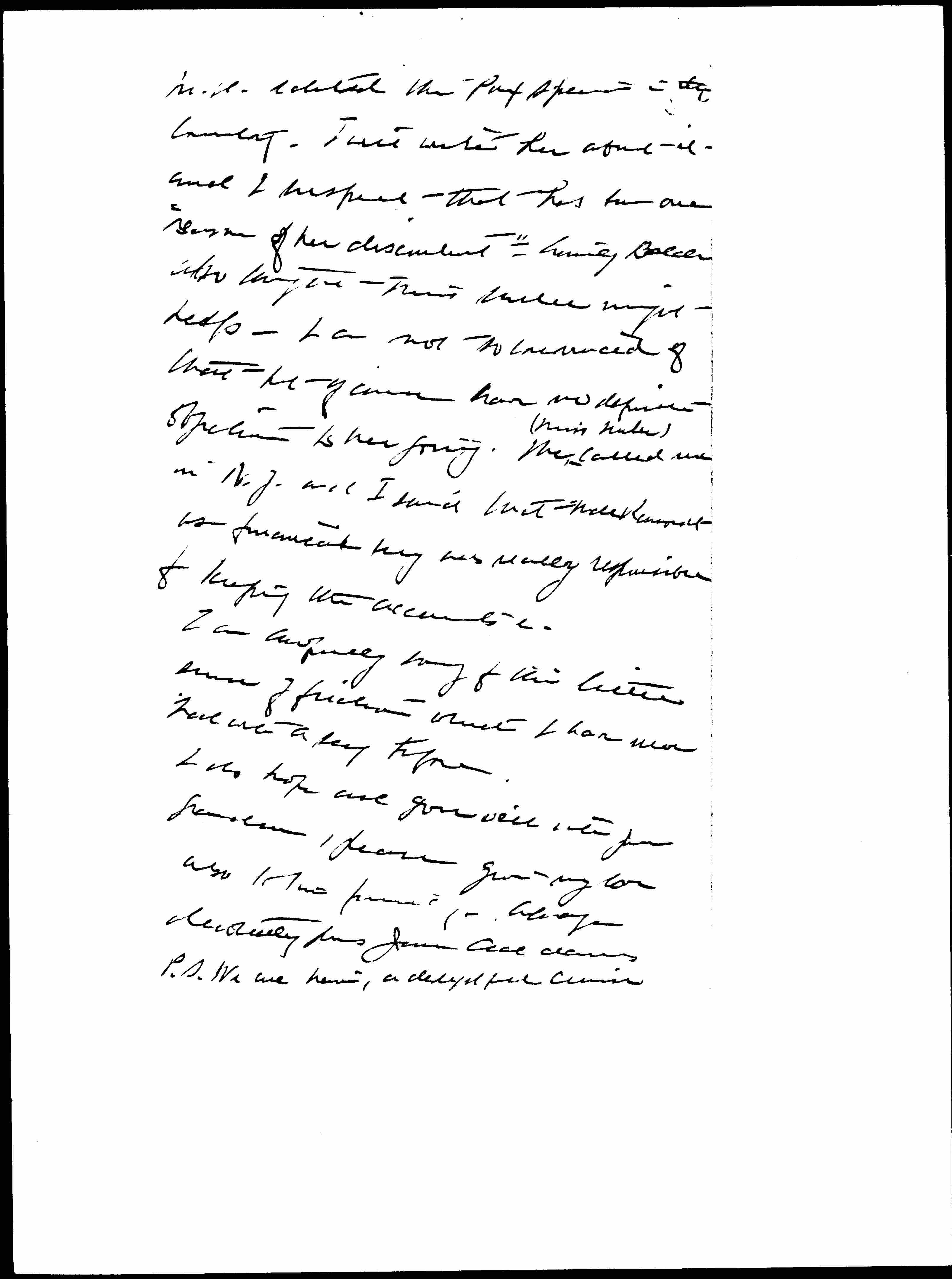 As Mrs Spencer hasn't been able to, I really think that the U.S.A. section ought to, for each member gets a copy of the Pax as they did when [page 2] M. D. edited the "Pax Special" in this country. I will write her about it and I suspect that has been one "reason of her discontent." Emily Balch also thought Miss Surles might help -- I am not so convinced of that but of course have no definite objection to her going. She ↑(Miss Surles)↓ called me in N.Y. and I said that Mde Ramondt as financial secy was really responsible for keeping the accounts [etc].