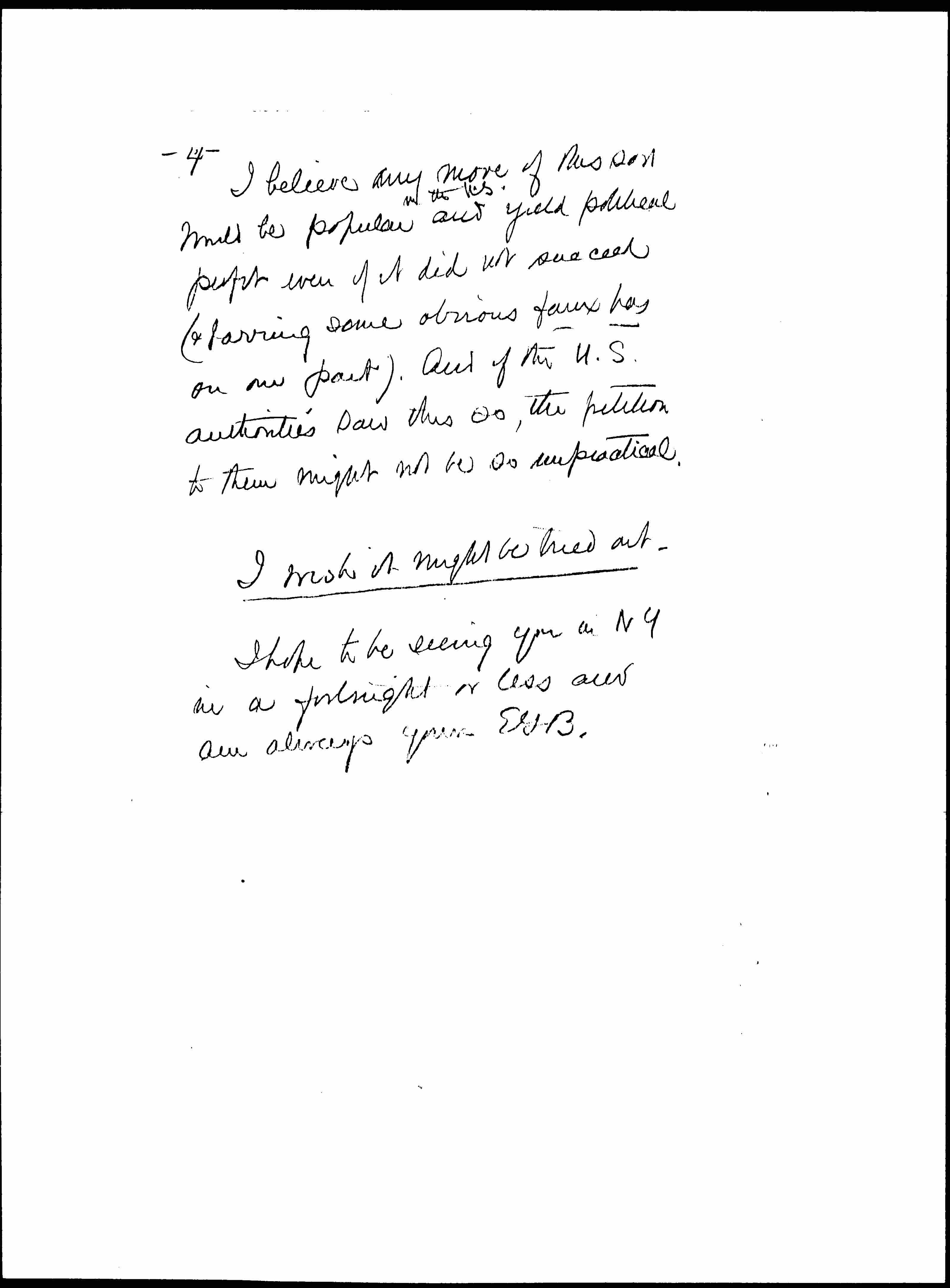 I hope to be seeing you in NY in a fortnight or less and am always yours E G B.