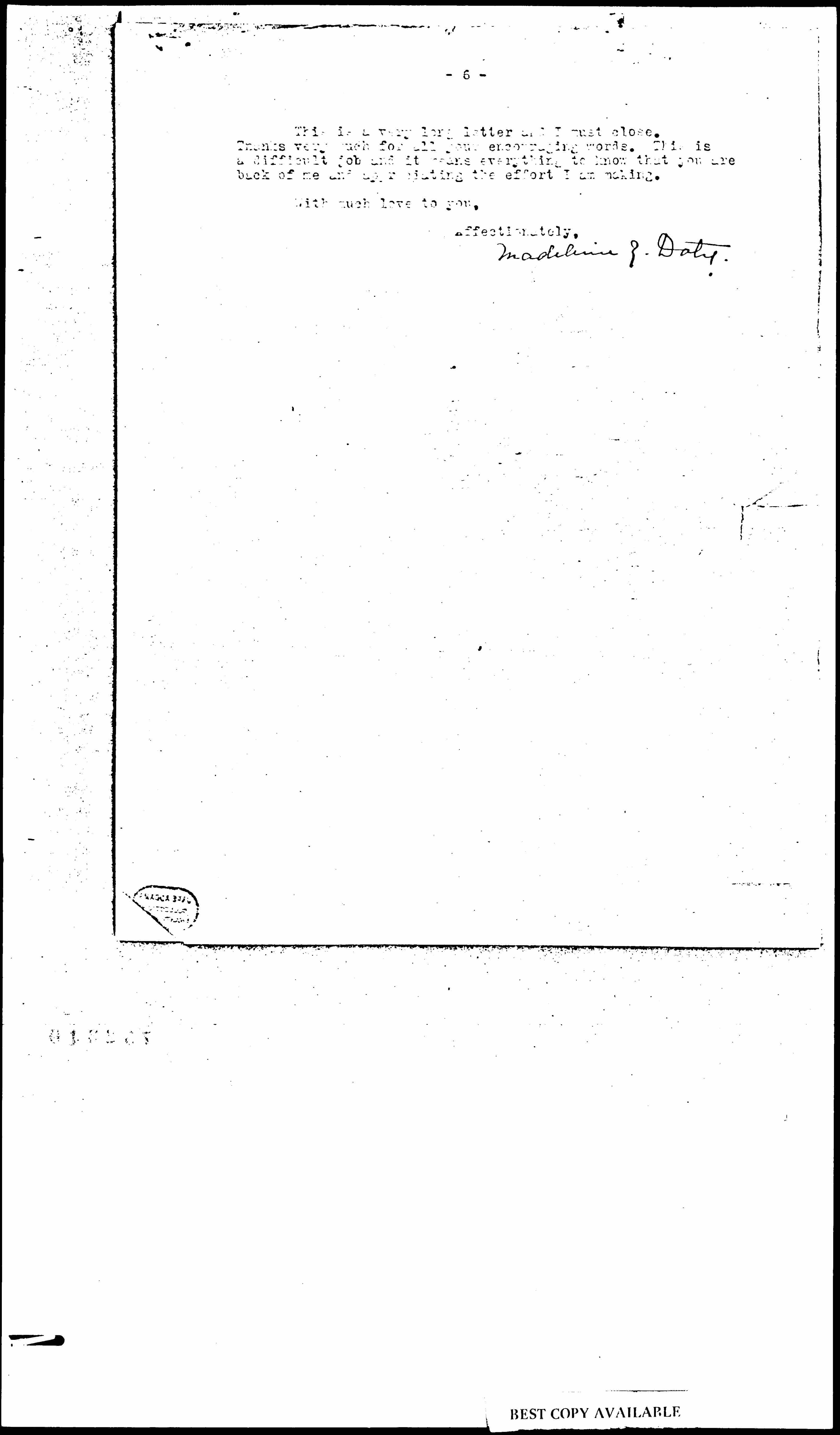 This is a very long letter and I must close. Thanks very much for all your encouraging words. This is a difficult job and it means everything to know that you are back of me and appreciating the effort I am making.