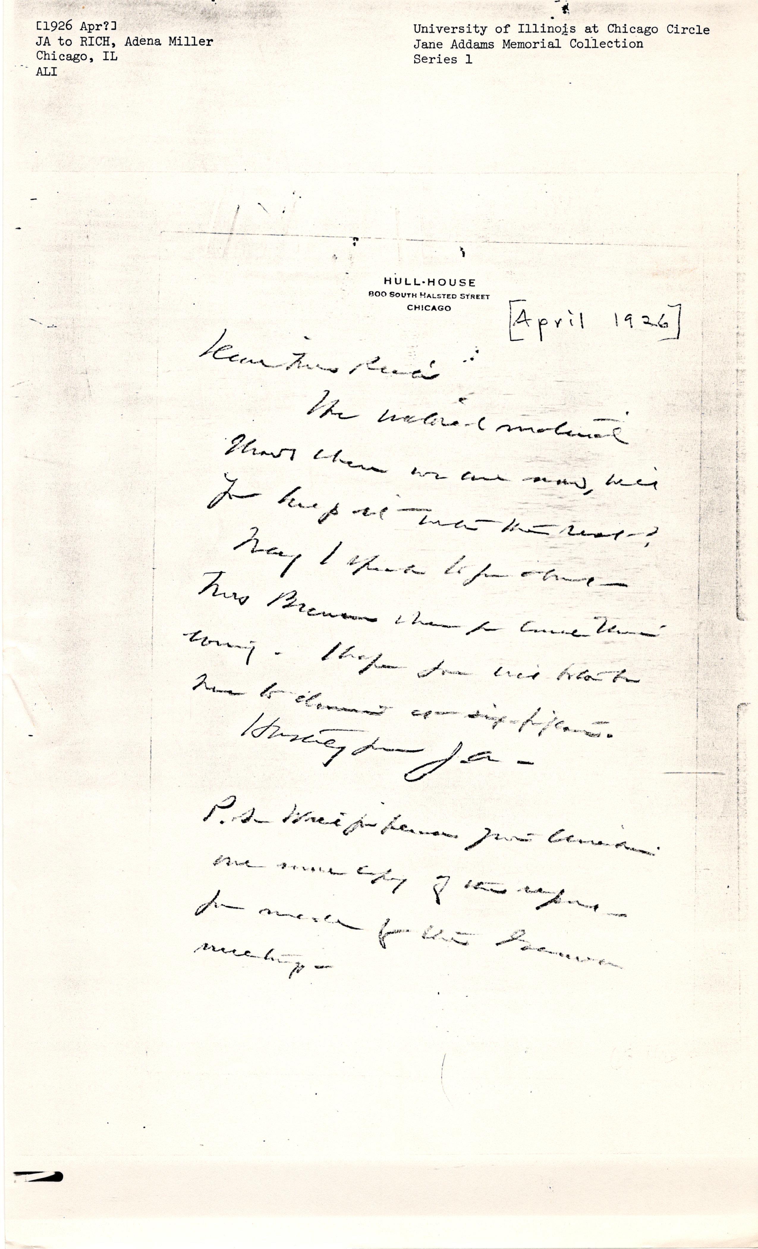 P.S. Will you please give [Amelia] one more copy of the report you made of the Geneva meetings.