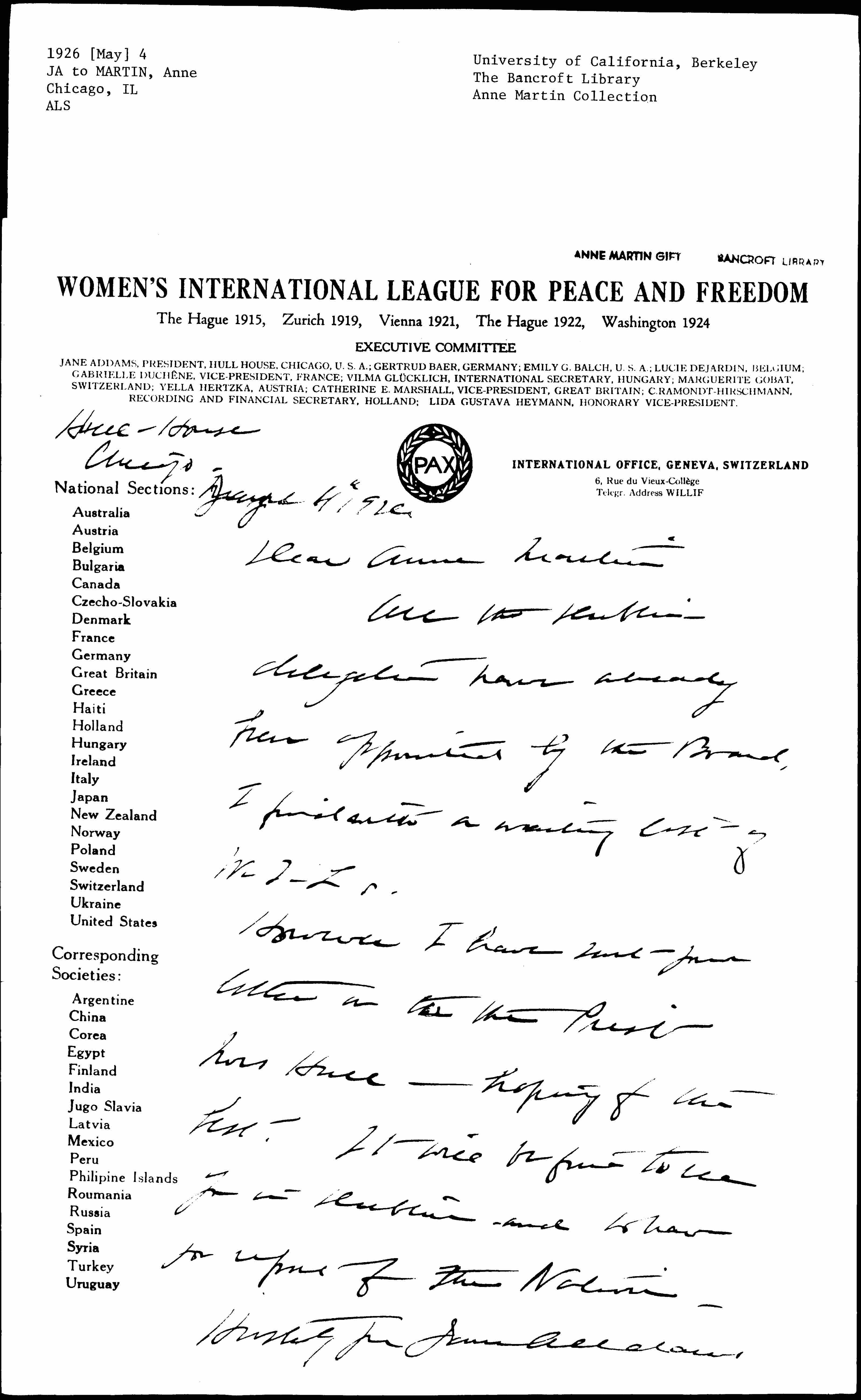 WOMEN'S INTERNATIONAL LEAGUE FOR PEACE AND FREEDOM