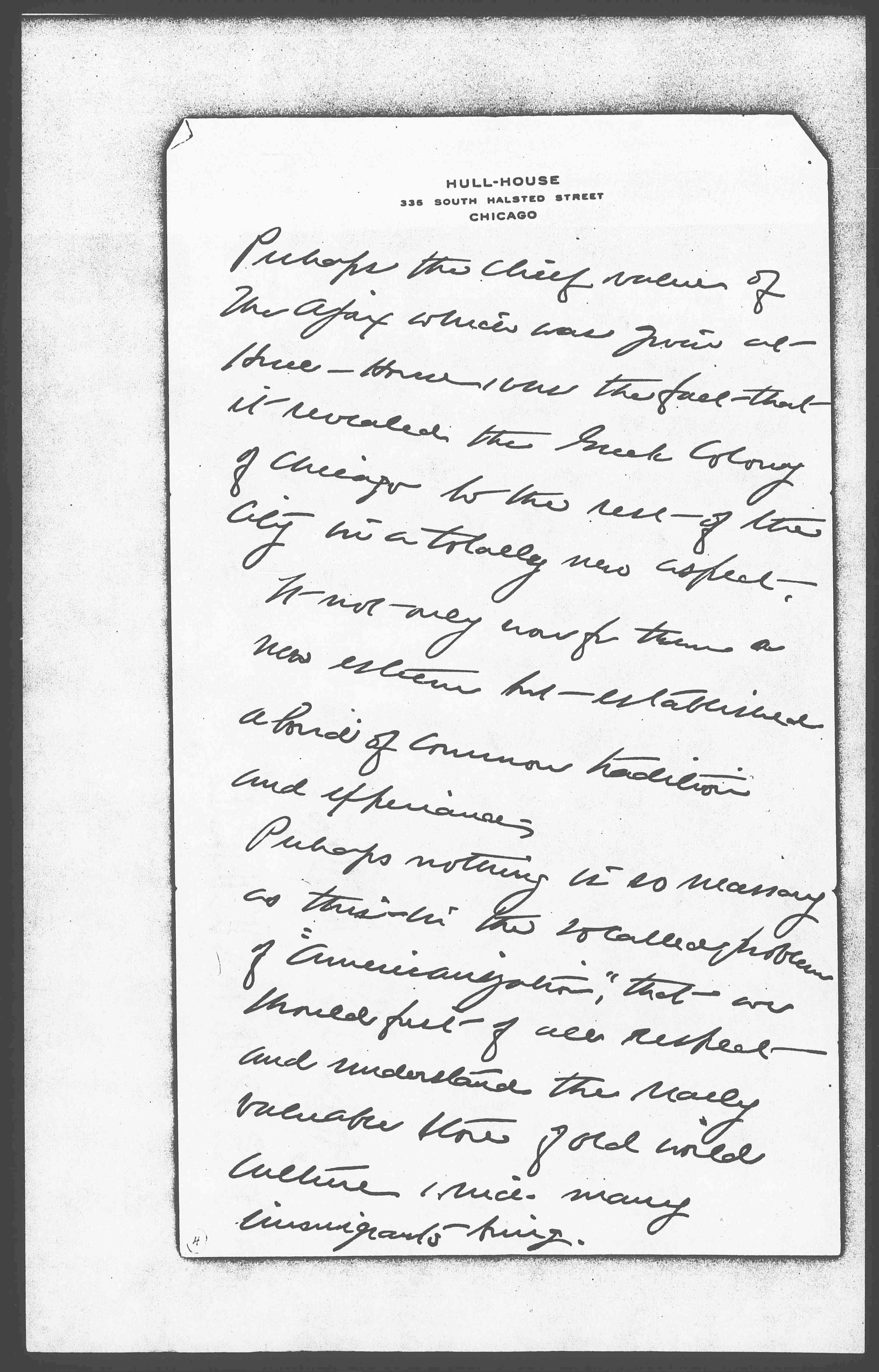 Perhaps the chief value of The Ajax which was given at Hull-House, was the fact that it revealed the Greek Colony of Chicago to the rest of the city in a totally new aspect. It not only won for them a new esteem but established a bond of common tradition and experience.