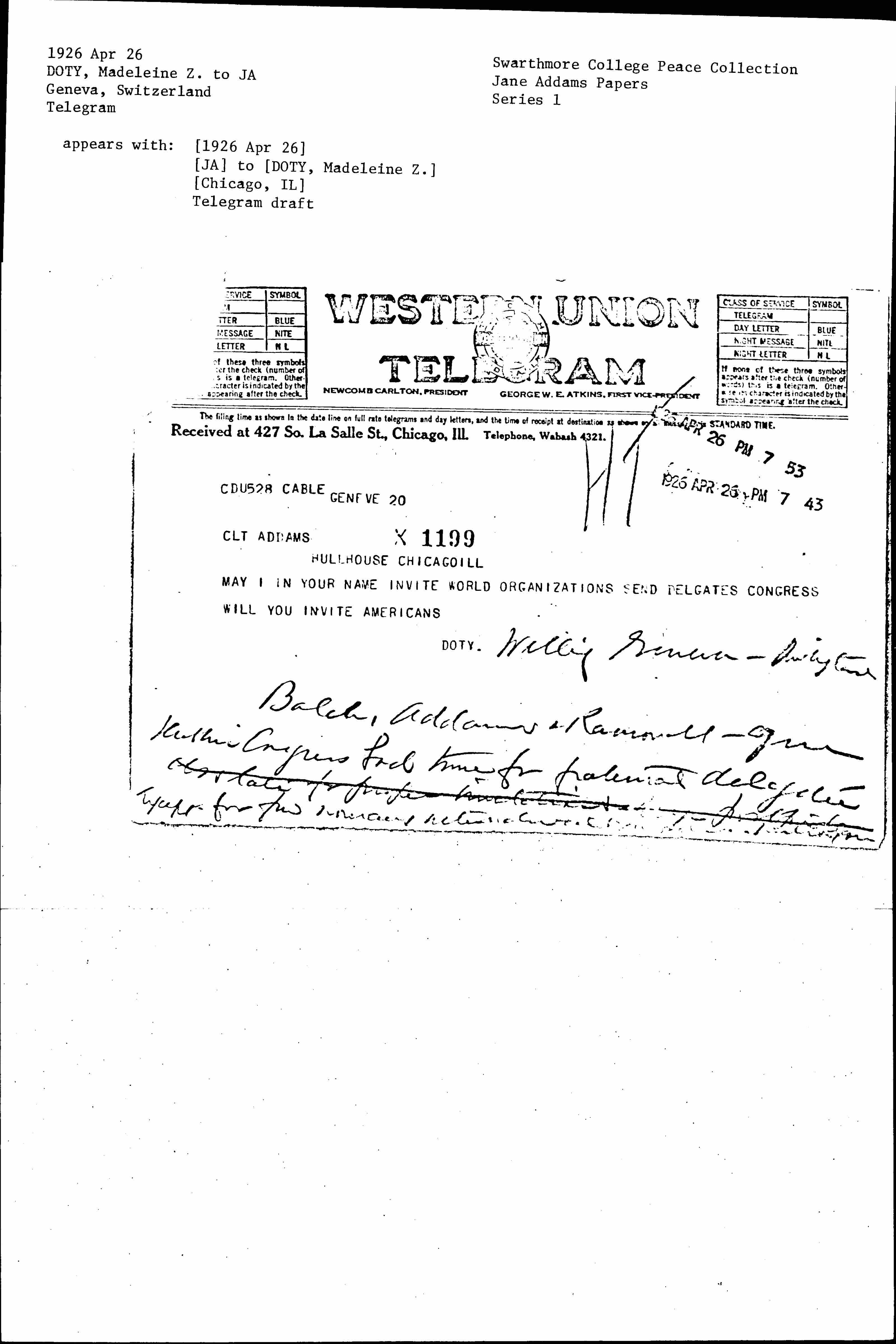 MAY I [illegible] YOUR NAME INVITE WORLD ORGANIZATIONS SEND DELEGATES CONGRESS WILL YOU INVITE AMERICANS