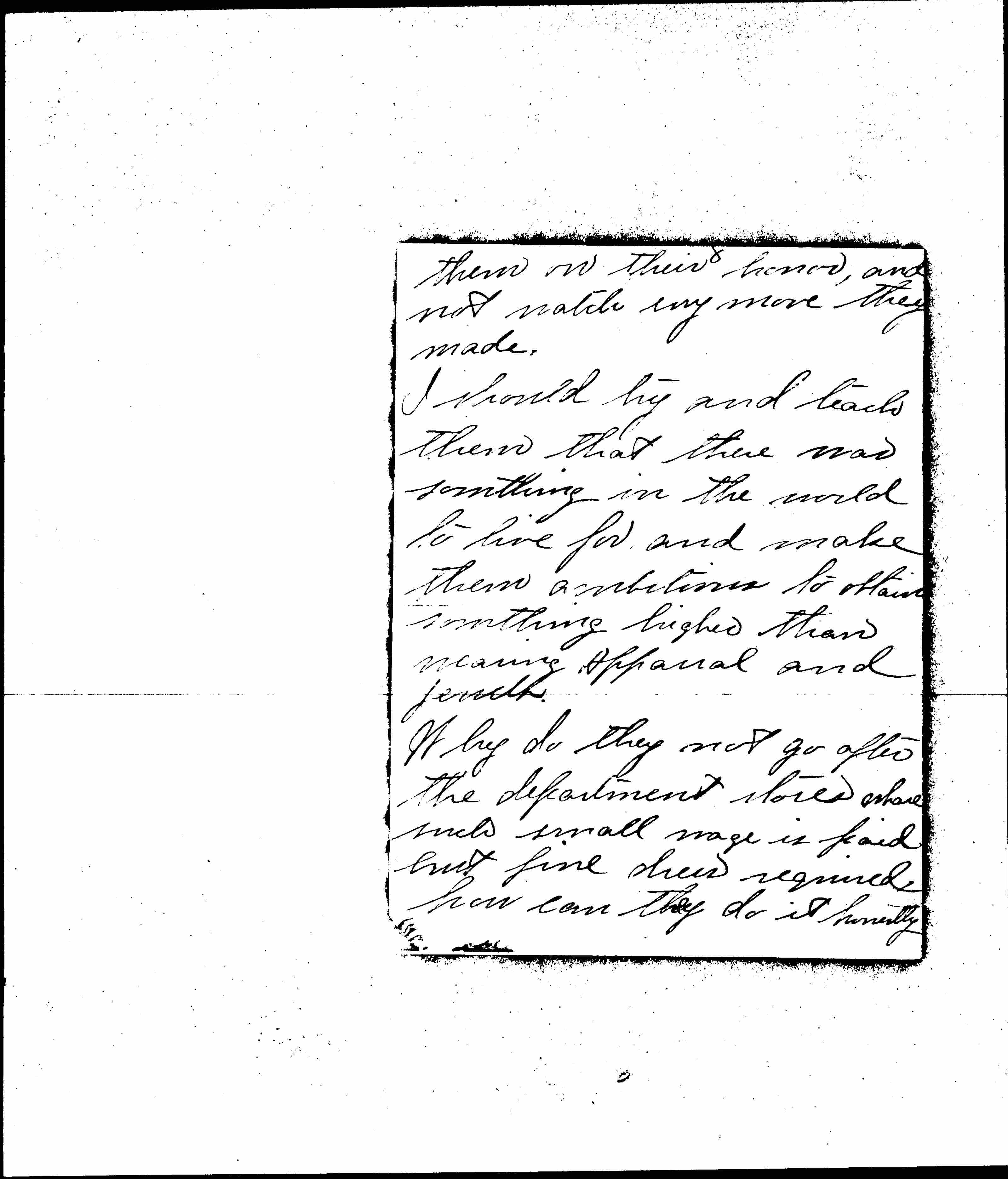 Why do they not go after the department stores where such small wage is paid but fine dress required, how can they do it honestly. [page 9] Those are the things to rectify.