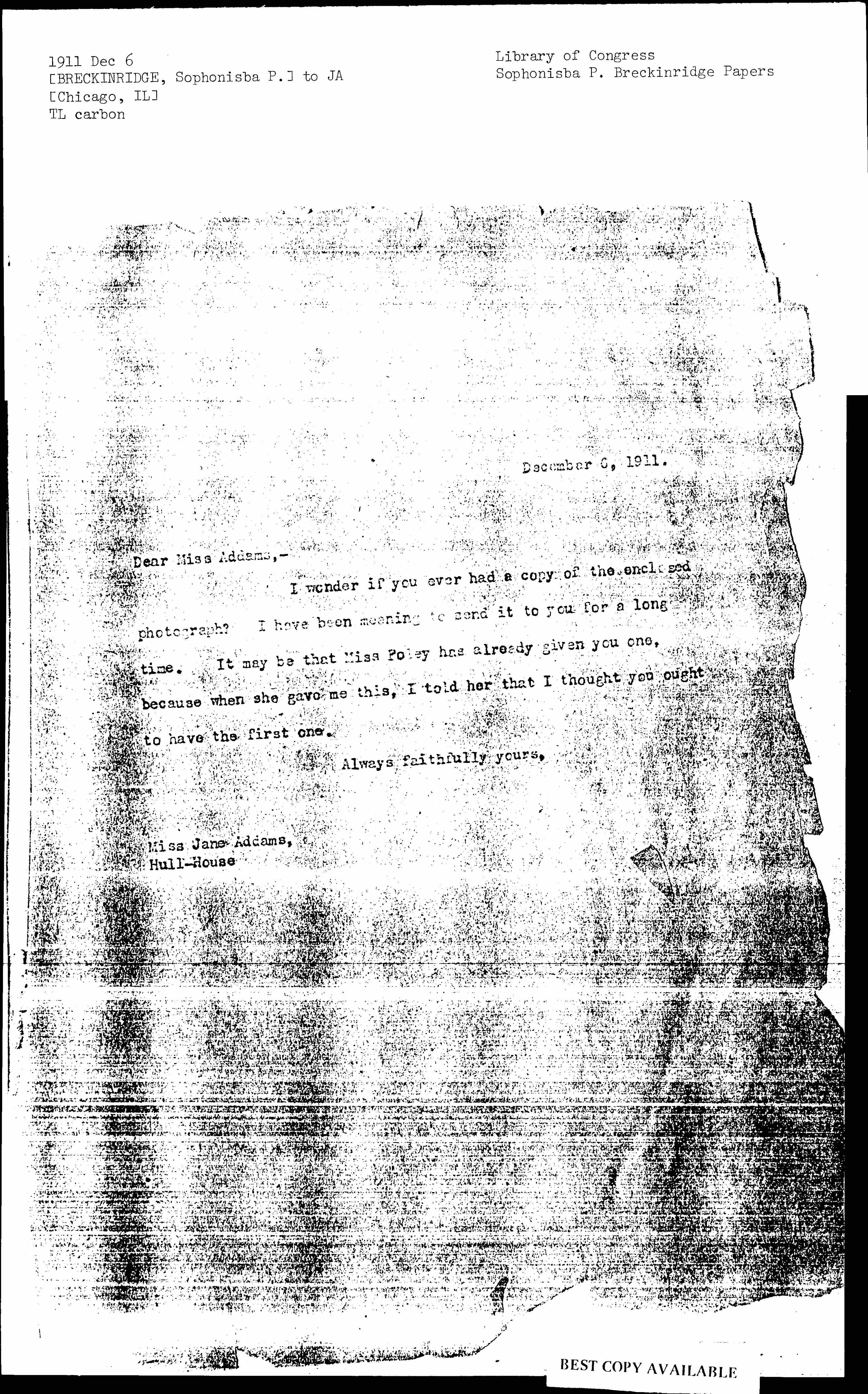 I wonder if you ever had a copy of the enclosed photograph? I have been meaning to send it to you for a long time. It may be that Miss Foley has already given you one, because when she gave me this, I told her that I thought you ought to have the first one.