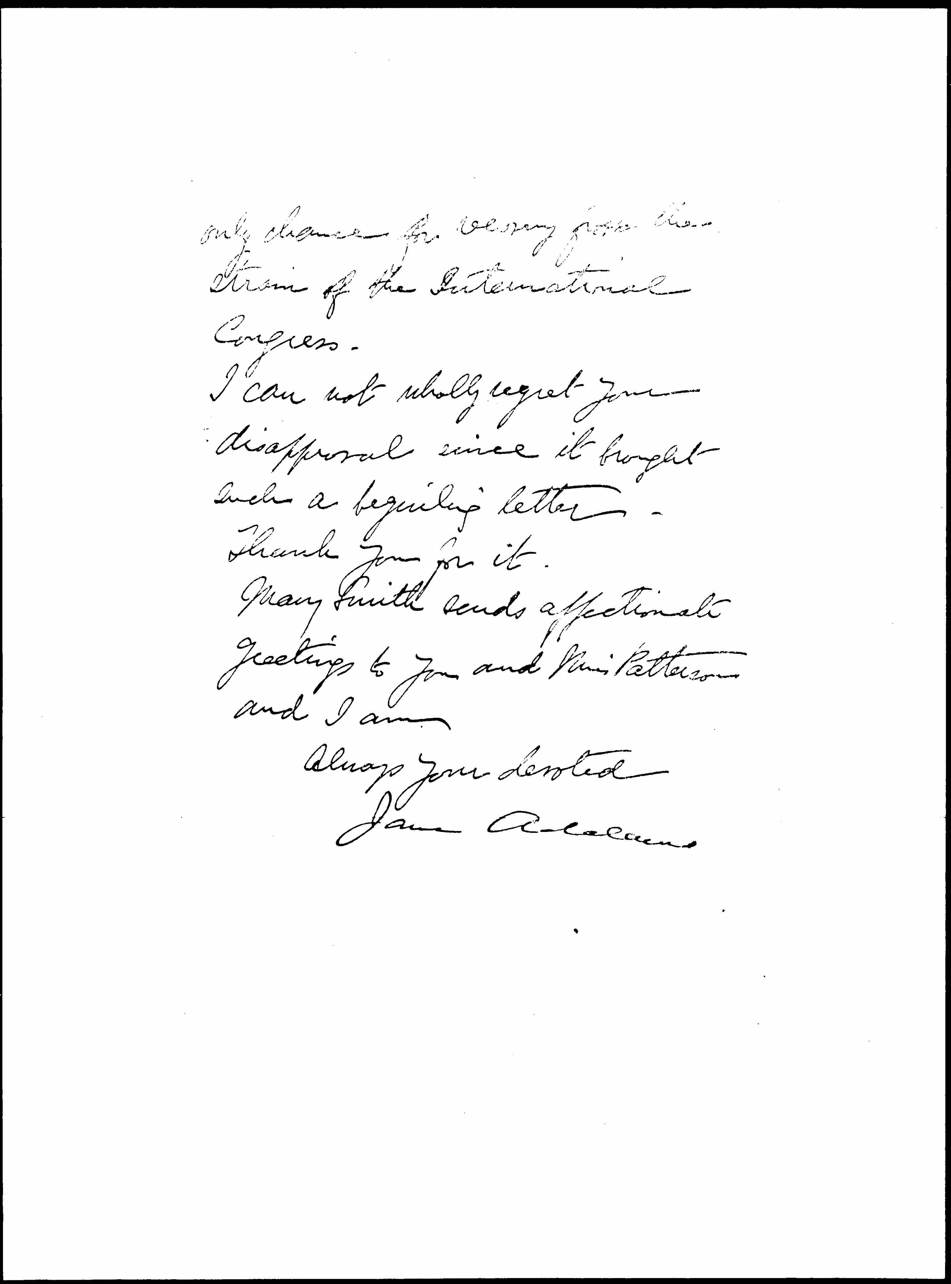 Mary Smith sends her affectionate greetings to you and Miss [Paterson] and I am