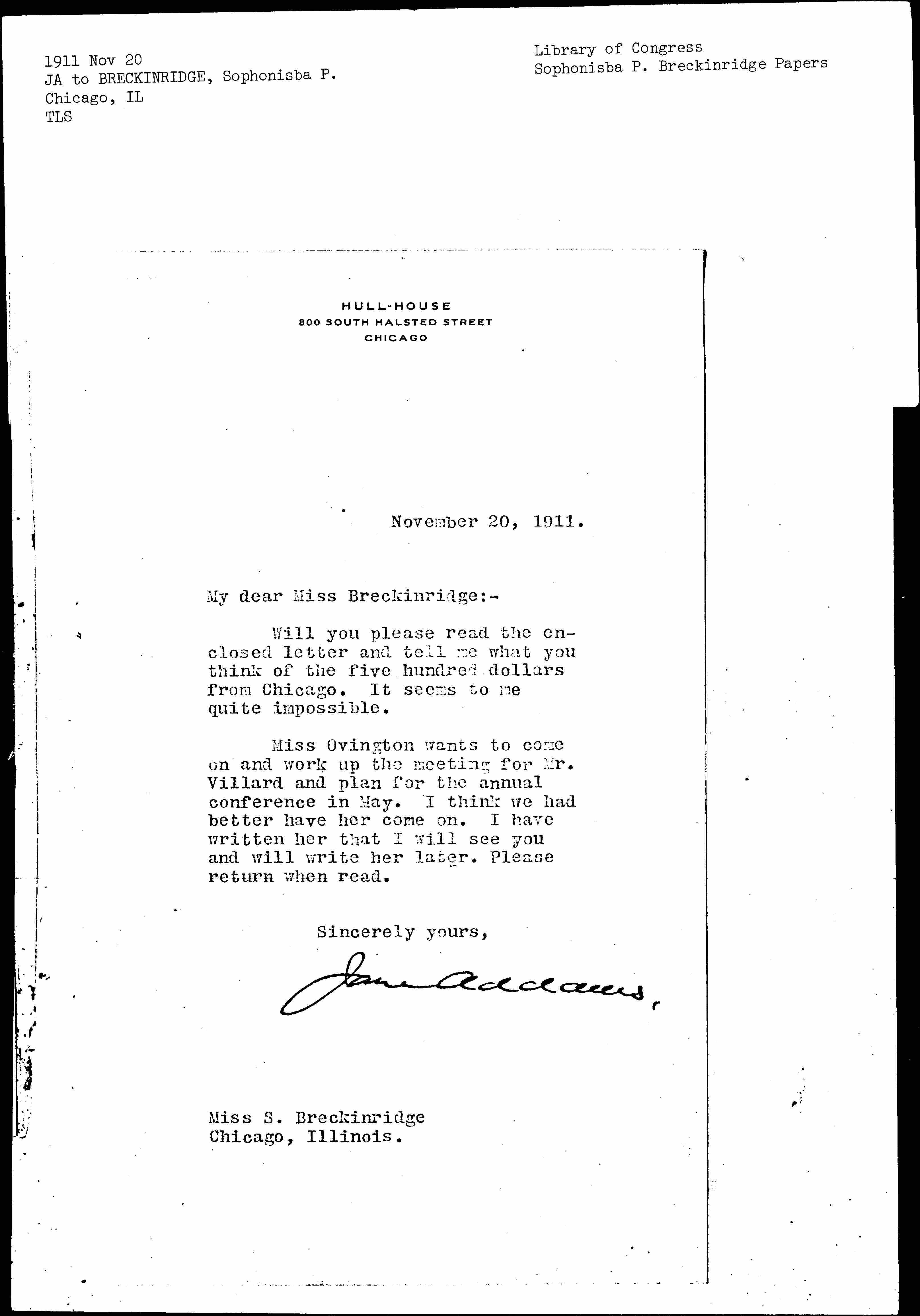 Jane Addams. [signed]