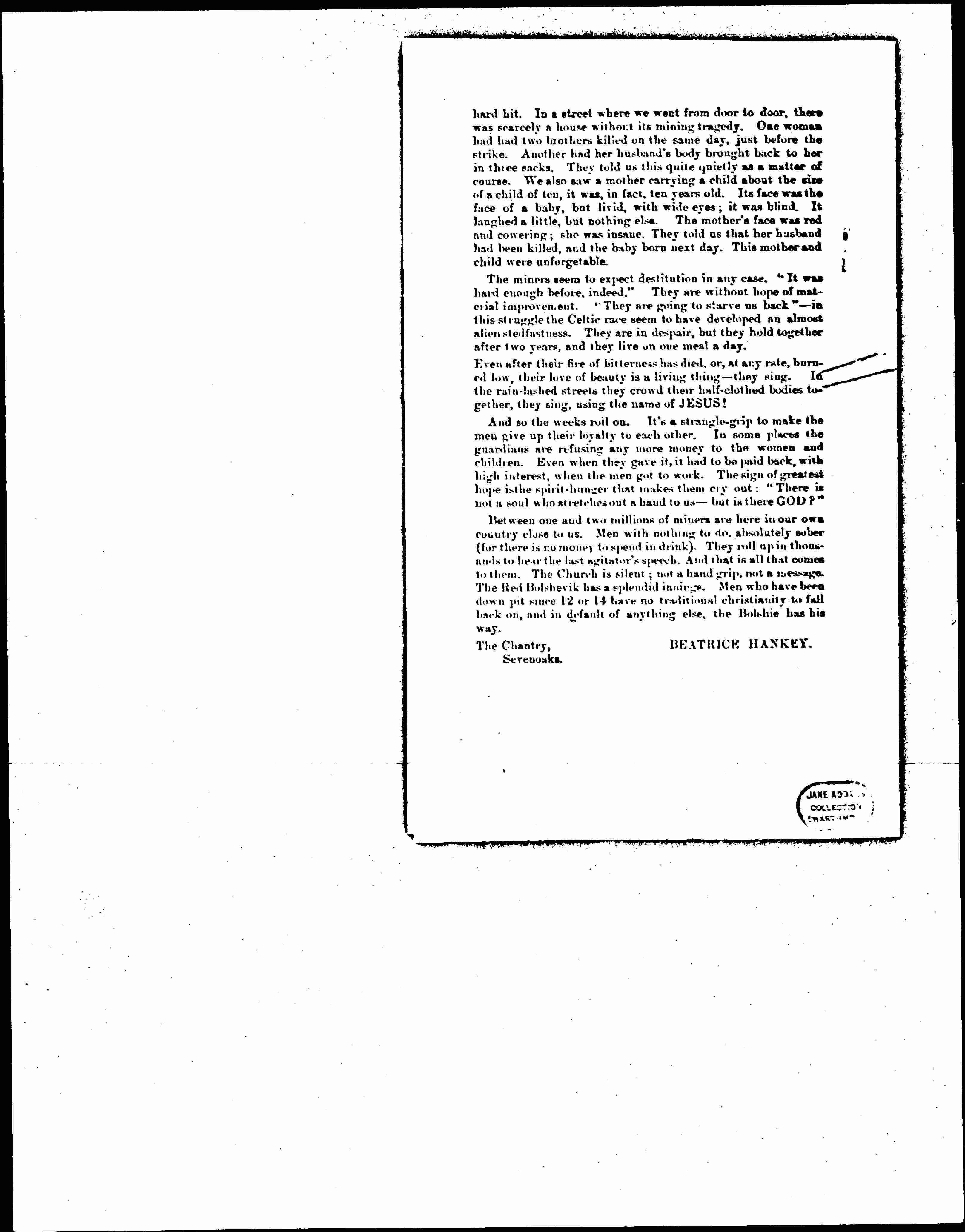Mary Ann Kingsland Higgs to Jane Addams, August 10, 1926
