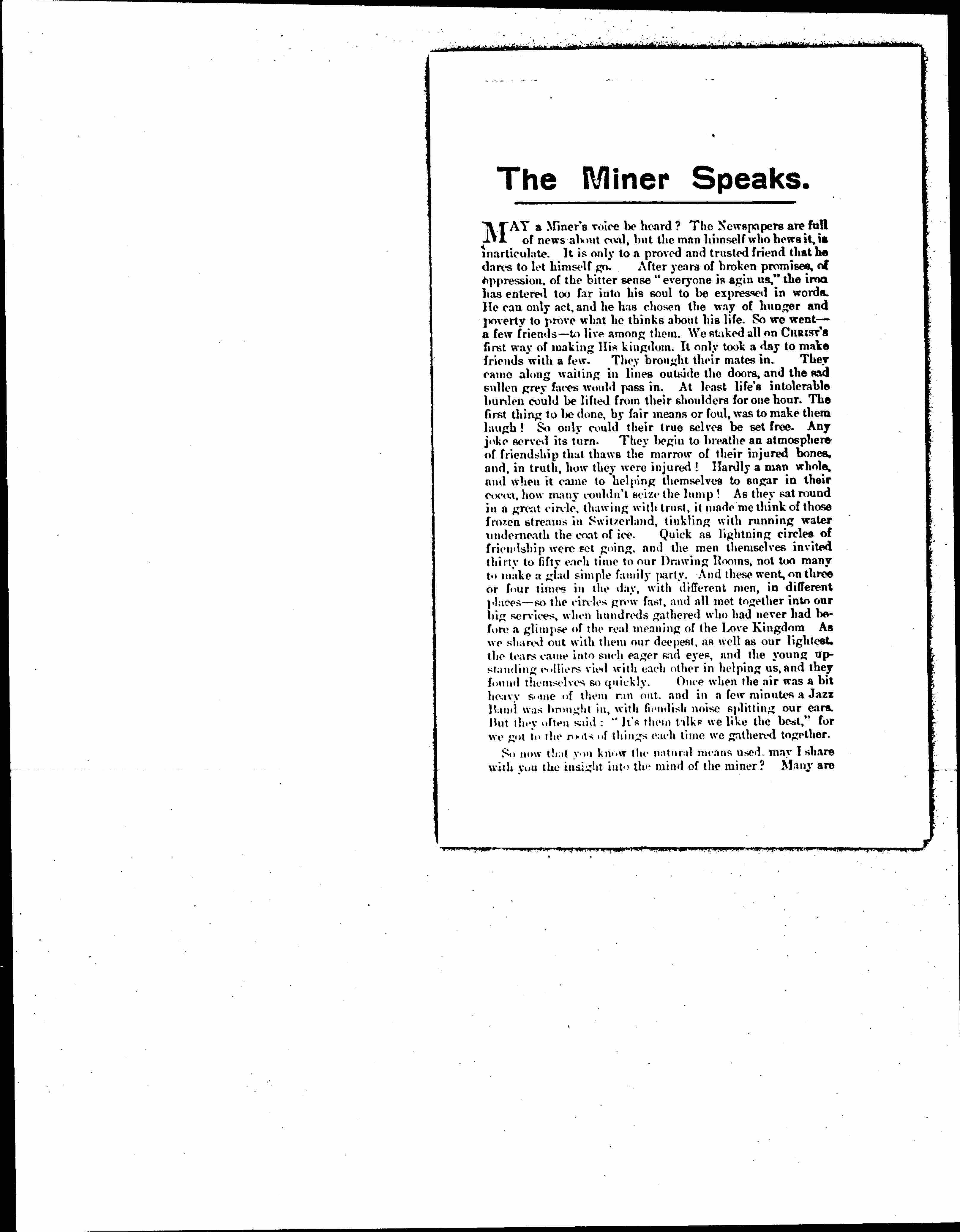 The Miner Speaks, ca. May 1926