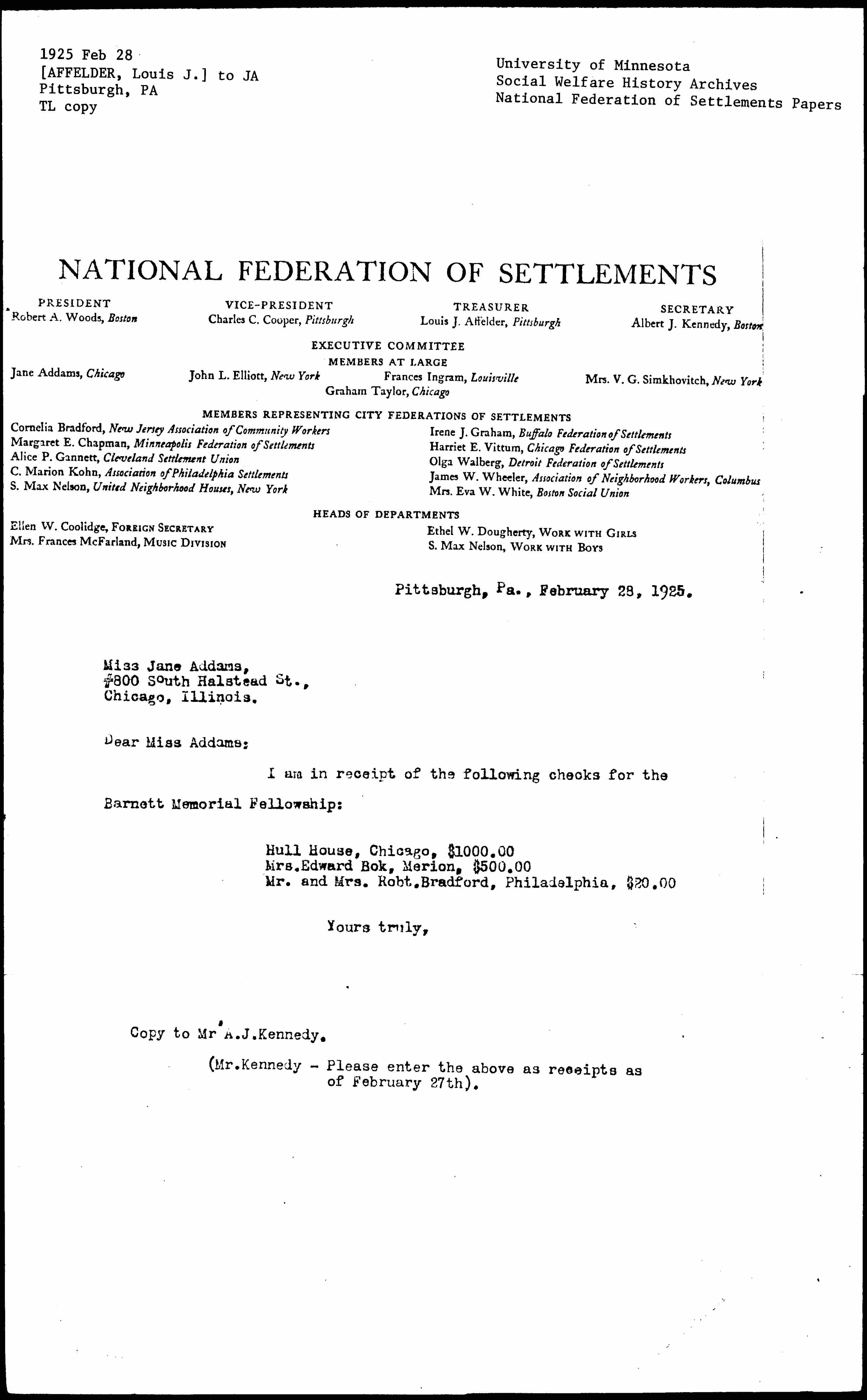 Pittsburgh, Pa., February 28, 1925.